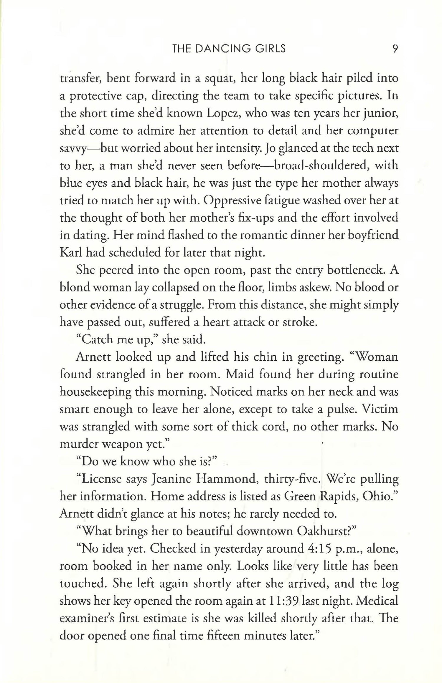 When loving wife Jeanine Hammond is found dead in a small leafy town in Massachusetts, newly promoted Detective Jo Fournier is shocked to her core. Why leave her body posed like a ballerina? Why steal her wedding band and nothing else? Hungry for answers, Jo questions Jeanine's husband, but the heart-breaking pain written on his face threatens to tear open Jo's old wounds. It's the same pain she felt when her boyfriend was cruelly shot dead by a gang in their hometown of New Orleans. She couldn't get justice for him, but she's determined to get justice for Jeanine's devastated family.