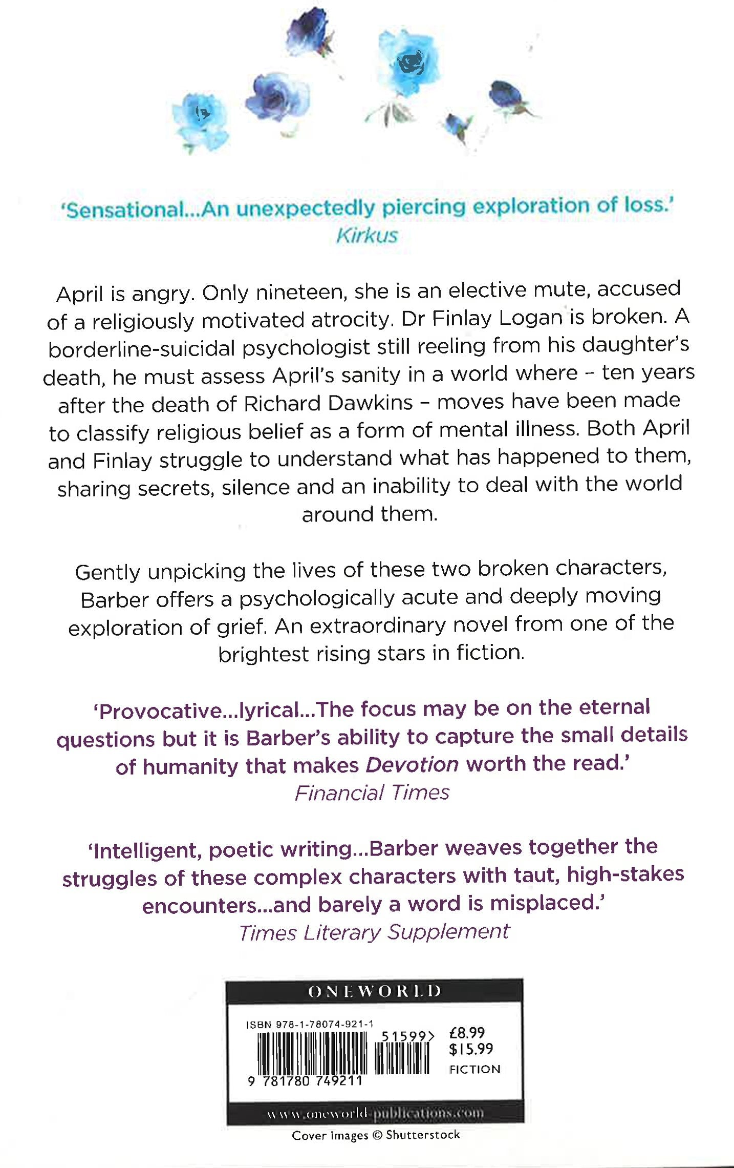 April is angry.Only nineteen, she is an elective mute, accused of a religiously motivated atrocity. Dr Finlay Logan is broken. A borderline-suicidal psychologist still reeling from his daughter's death, he must assess April's sanity in a world where - ten years after the death of Richard Dawkins - moves have been made to classify religious belief as a form of mental illness. Both April and Finlay struggle to understand what has happened to them, sharing secrets, silence and an inability to deal with the world around them. Gently unpicking the lives of these two broken characters, Barber offers a psychologically acute and deeply moving exploration of grief. An extraordinary novel from one of the brightest rising stars in fiction.