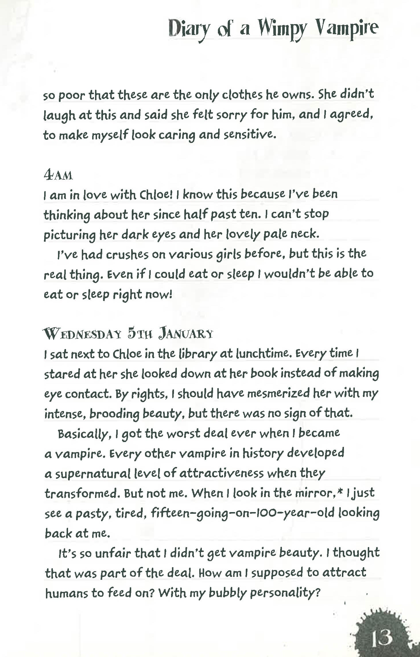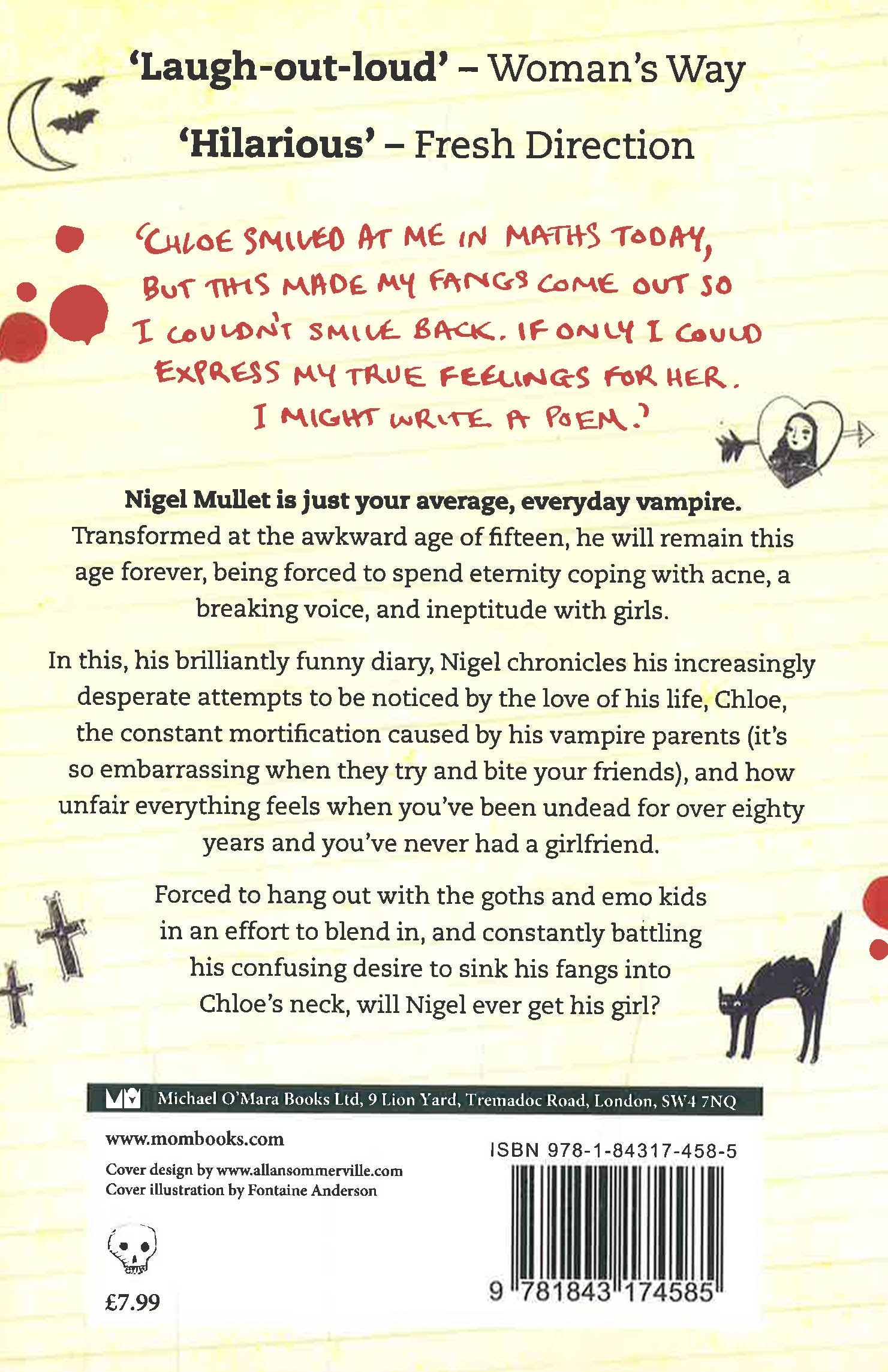 Like Edward Cullen in Twilight, Nigel Mullet was transformed into a vampire when he was still a teenager, and will remain this age forever. Unfortunately, Nigel became a vampire at the awkward age of fifteen, and must spend eternity coping with acne, a breaking voice, and an ineptitude with girls ...In this, his excruciatingly funny diary, Nigel chronicles his increasingly desperate attempts to be noticed by the love of his life, Chloe Sparrow, the constant mortification caused by his vampire parents (not to mention the worry that they might accidentally eat one of his friends), and the frustration one feels when you've got the whole of boring eternity stretching out in front of you and you can't even have a lie-in (vampires don't sleep). Forced to hang out with the Goths and emo kids due to his pale skin and social awkwardness, and constantly battling his embarrassingly overwhelming desire to sink his fangs into Chloe's neck, will Nigel ever get his girl? Fantastically witty and hugely entertaining, this fun and accessible diary will appeal to anyone, teenage or otherwise ... *This book may have minor shelfwear.