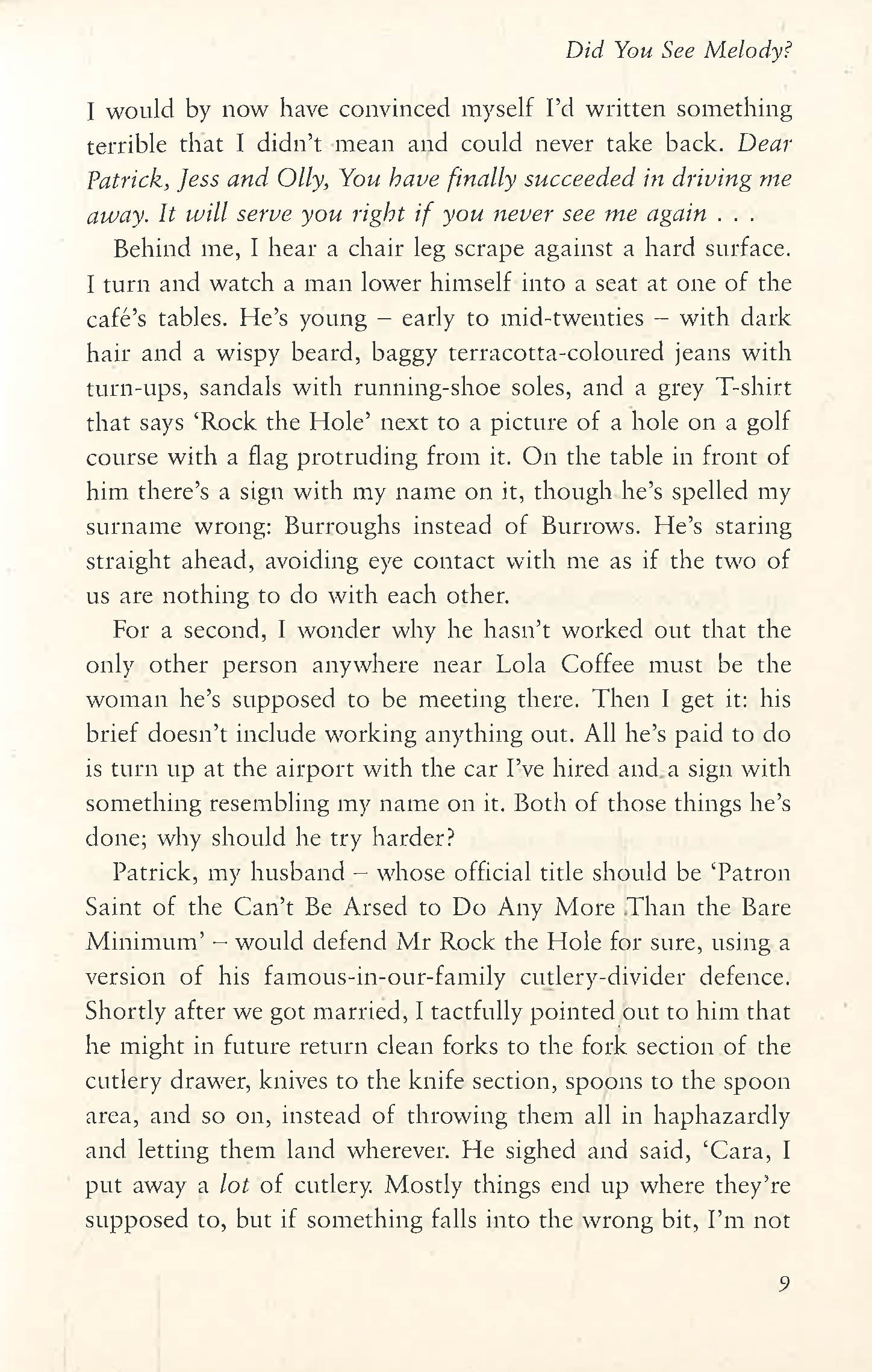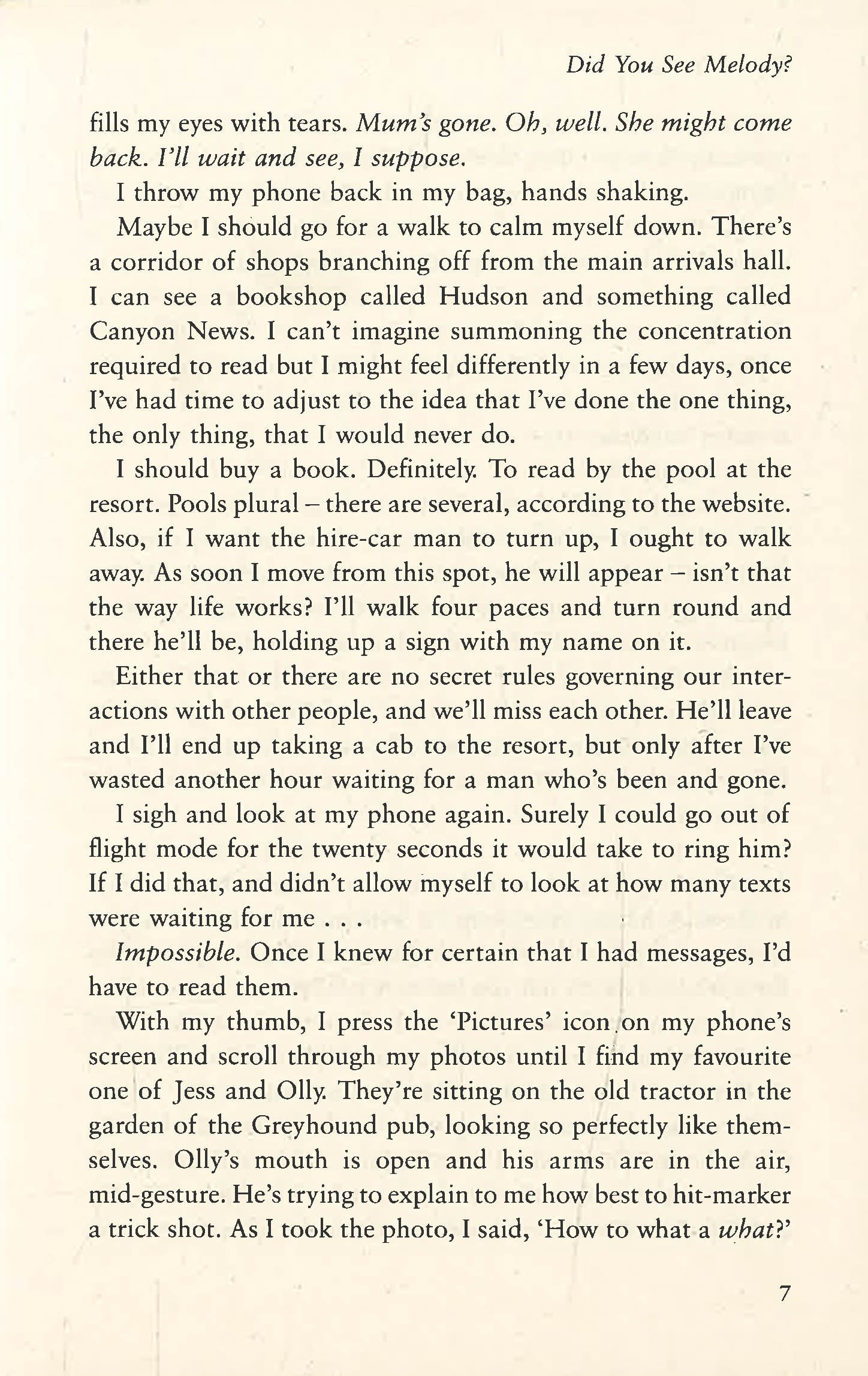 Cara doesn't know what to trust: everything she's read and heard about the case, or the evidence of her own eyes. Did she really see Melody?