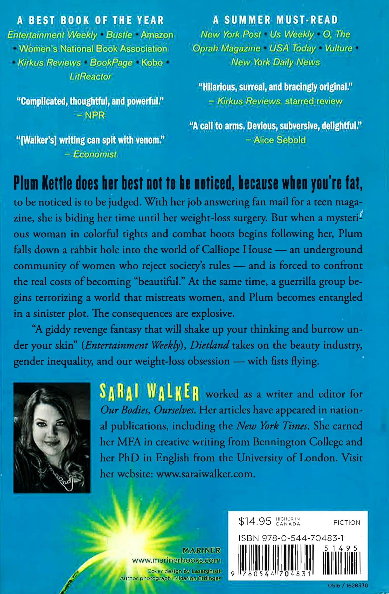 Entertainment Weekly - Bustle - Amazon - Women's National Book Association - Kirkus Reviews - BookPage - Kobo - LitReactor "Audacious and gutsy and heartbreaking -- Dietland completely blew me away." -- Jennifer Weiner The diet revolution is here. And it's armed. Plum Kettle does her best not to be noticed, because when you're fat, to be noticed is to be judged. With her job answering fan mail for a teen magazine, she is biding her time until her weight-loss surgery. But when a mysterious woman in colorful tights and combat boots begins following her, Plum falls down a rabbit hole into the world of Calliope House -- an underground community of women who reject society's rules -- and is forced to confront the real costs of becoming "beautiful." At the same time, a guerilla group begins terrorizing a world that mistreats women, and Plum becomes entangled in a sinister plot. The consequences are explosive. "A giddy revenge fantasy that will shake up your thinking and burrow under your skin" (Entertainment Weekly), Dietland takes on the beauty industry, gender inequality, and our weight-loss obsession -- with fists flying.