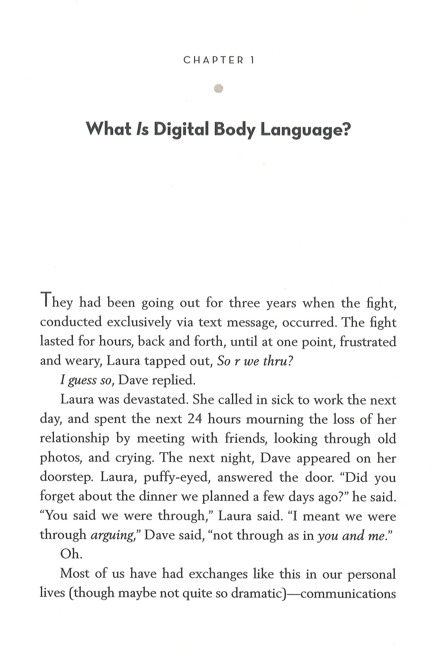 Digital Body Language will turn your daily misunderstandings into a set of collectively understood laws that foster connection, no matter the distance. Dhawan investigates a wide array of exchanges?from large conferences and video meetings to daily emails, texts, IMs, and conference calls?and offers insights and solutions to build trust and clarity to anyone in our ever changing world.