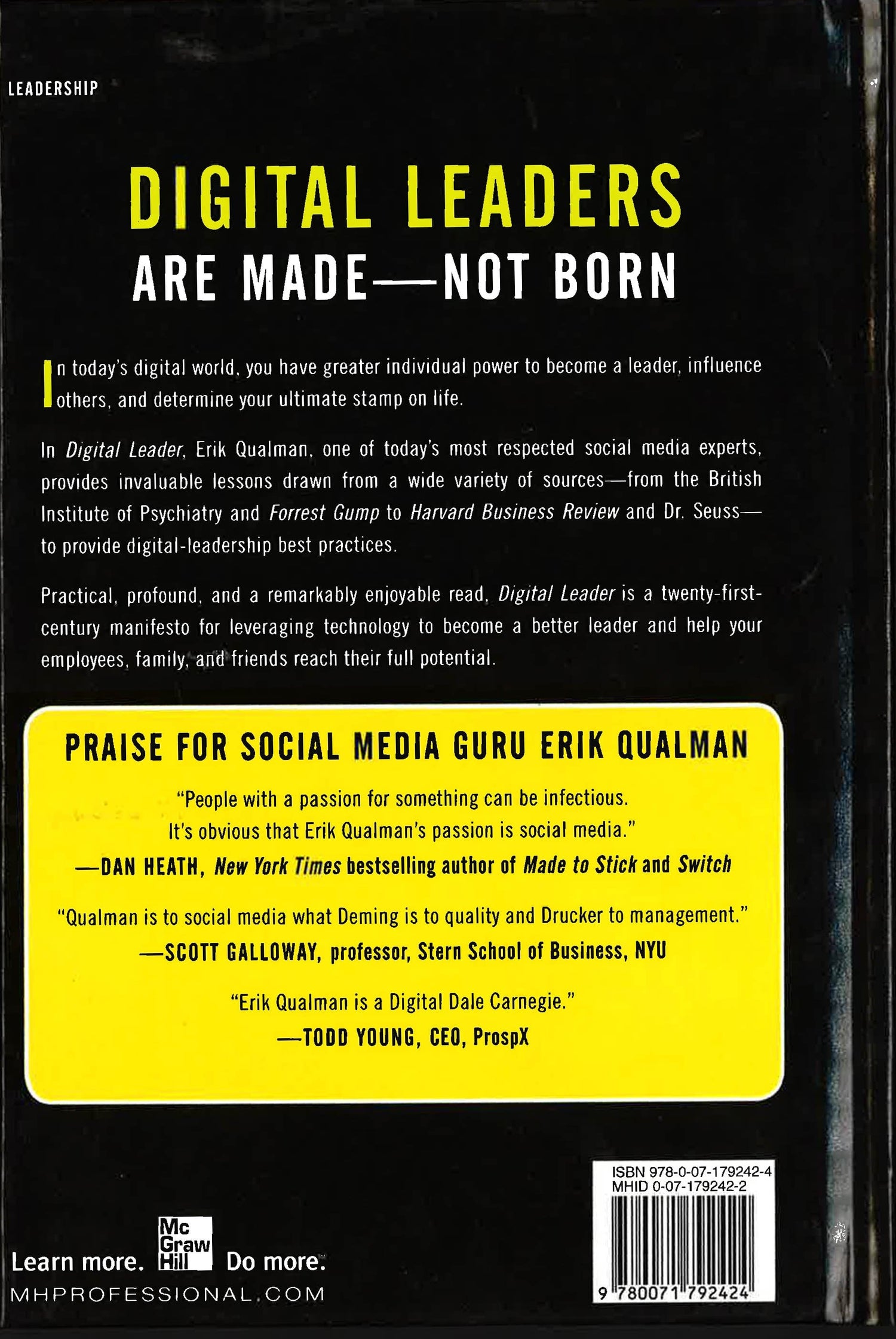 Digital leaders are made, not born--you have it within you to become an effective digital leader. As a leader in the digital age, your reach is boundless. With advanced technologies, you can exert more direct and indirect influence than ever before--anywhere at any time. And everything you do, fail to do, and wish you didn't do is documented forever in the digital universe.
