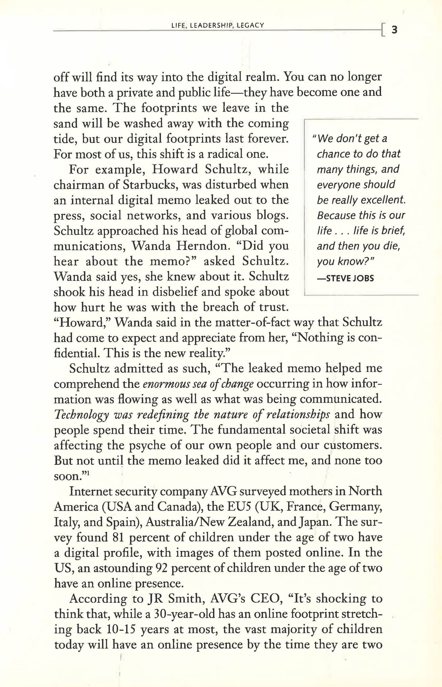 Digital Leader explains how to take full advantage of everything the digital age has to offer, while avoiding common pitfalls that can damage your "digital legacy."