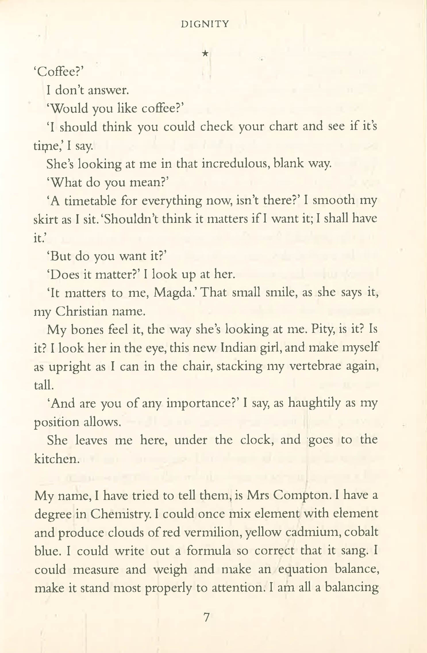 Magda is a former scientist with a bad temper and a sharp tongue, now living alone in a huge house by the sea. Confined to a wheelchair, her once spotless home crumbling around her, she gets through carers at a rate of knots.