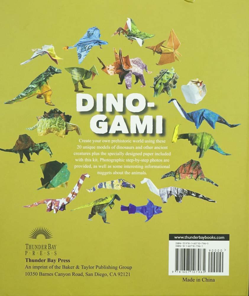 Just when you thought your paper was safe! Ordinary paper springs to life with "Dino-Gami," a new sophisticated origami kit for advanced origami artists. Create 20 origami projects using the specially designed papers included in the set: Dimetrodon, Ankylosaurus, Parasaurolophus, Stegosaurus, Coelacanth, Ornithocheirus, Velociraptor, T. rex, Dimorphodon, Apatsaurus, Triceratops, Spinosaurus, Archaeopteryx, Seismosaurus, Archelon, Pterodactyl, Pachycephalosaurus, Brachiosaurus, a dino skeleton--and even a baby dino egg. - Get to know some of your favorite Jurassic land giants in a whole new way.- Great fun for the entire family. "Dino-Gami" offers a challenge to the next generation of art and paper crafting origami enthusiasts.
