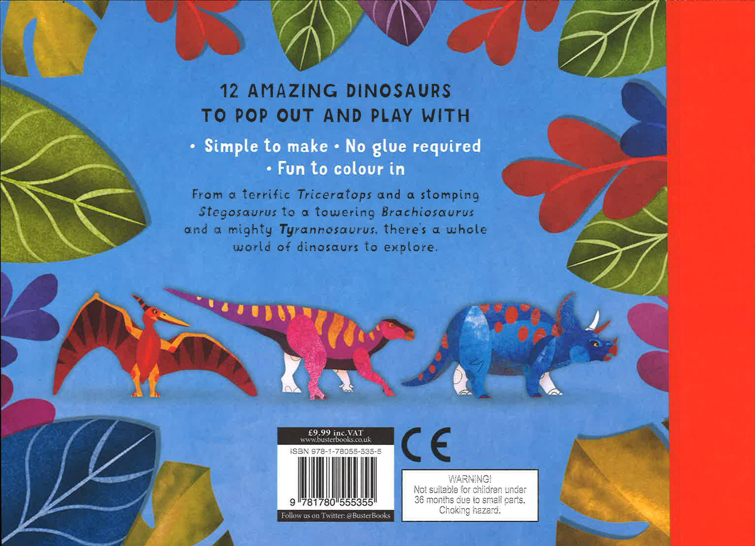 Through dramatic and striking illustrations from artist Jonathan Woodward, children can explore the prehistoric world and bring dinosaurs back to life with this collection of incredible press-out models to create. Colouring them in is a fun extra! Each simple design is reversible, with a fully coloured dinosaur on one side. On the reverse, the same design is repeated in black line for children to colour. From a stomping Stegosaurus to a terrific Triceraptops, there's a whole host of characters to meet. Fun facts accompany each dinosaur. The book also features two background scenes to display the completed models against.