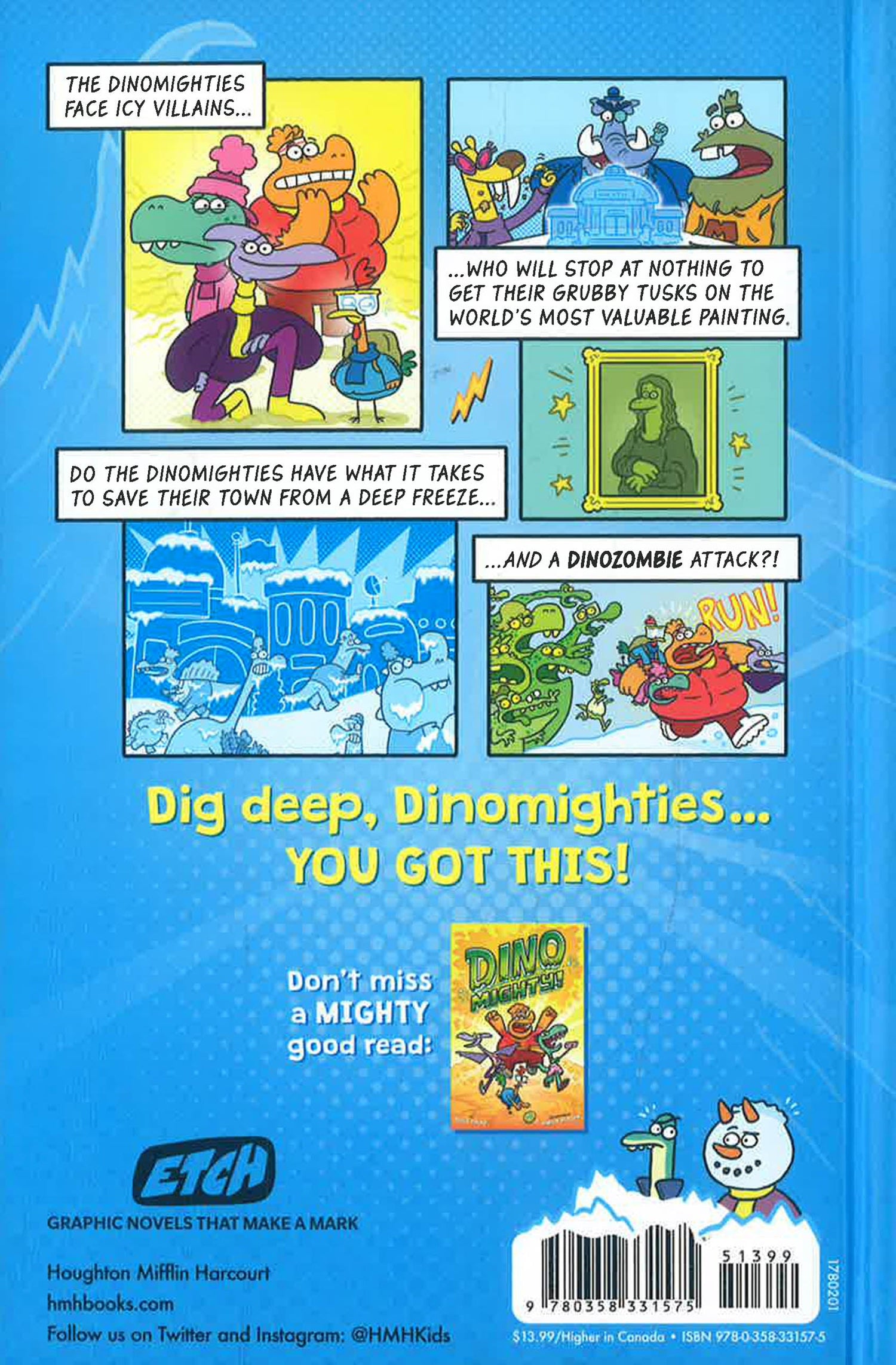 Dinotown is under attack! In this adventure, the Dinomighties face new icy villains led by Bully Mammoth. This colossal meanie will stop at nothing to get his grubby tusks on the world's most valuable painting: the Dino Lisa . . . even if it means putting a deep freeze on Dinotown. How will the Dinomighties heat things up in order to outsmart and ice out Bully and his big bad crew of furry doofs and manage to save their hometown along with the most precious piece of art in the whole wide world?