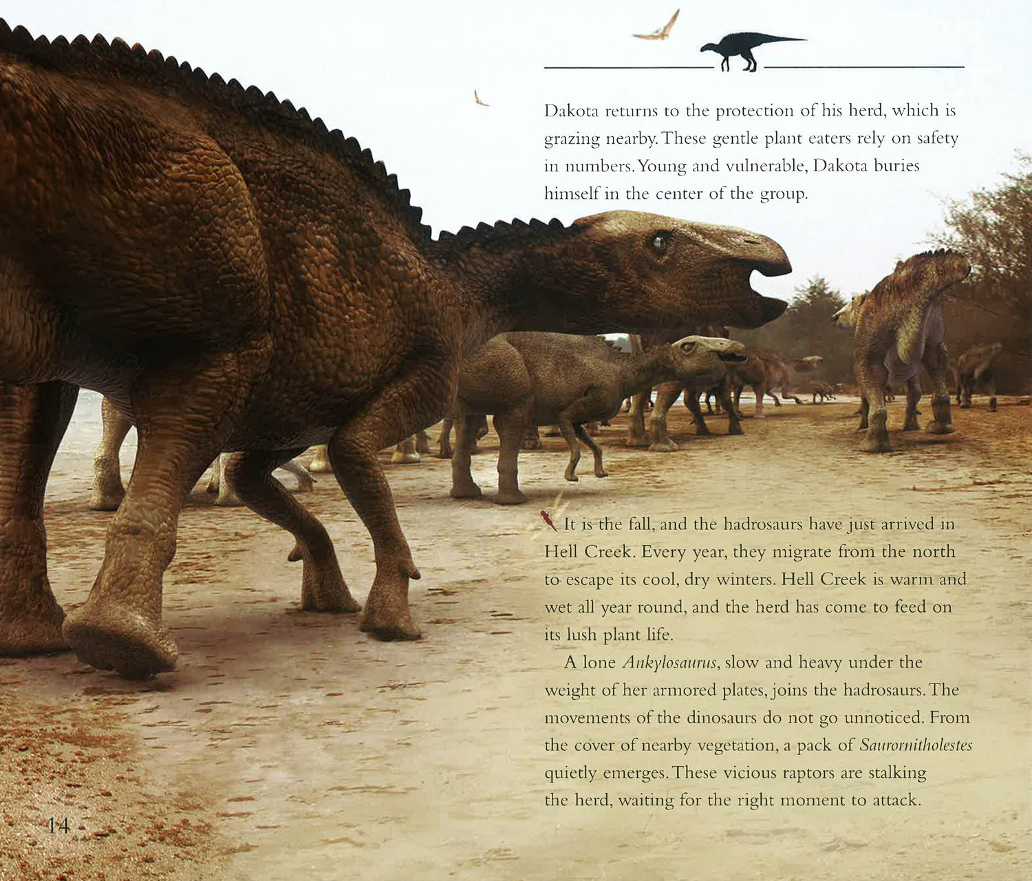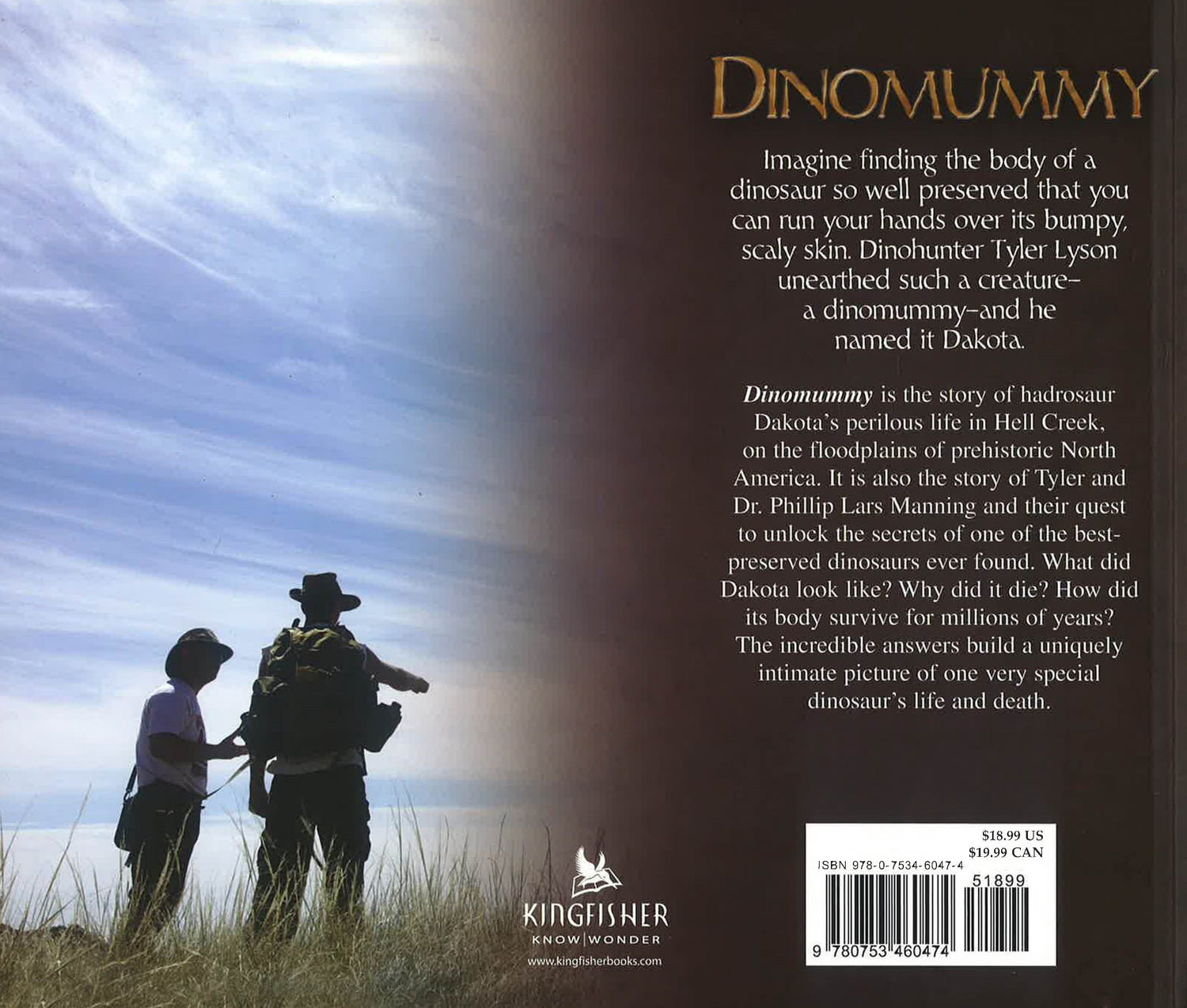 In 2000, teenage dino-hunter Tyler Lyson stumbled across the fossil remains of a hadrosaur in the remote hills of the Hell Creek Formation in North Dakota. More than a collection of fossilized bones, Tyler discovered a three dimensional mummified dinosaur--a dinomummy. He and a paleontologist from the University of Manchester in England, Dr. Phil Manning, led an excavation that would change the way we think about dinosaurs. Named for its place of discovery, "Dakota" was gradually uncovered and moved to a lab for further excavation and analysis. Tyler and Phil's enthusiasm, expertise, and years of work blend as this paleontological detective story unfolds. Stunning computer-generated artwork, based on fieldwork and laboratory studies of the hadrosaur specimen, brings Dakota and its environment back to life on the pages of this amazing book. Travel back in time to explore Hell Creek 65 million years ago, when herds of hadrosaurs migrated across vast floodplains. Dakota died during the Late Cretaceous Period on the floodplains of North America and its body was locked in a rocky tomb. But Dakota's story was far from over. From the rugged badlands of Hell Creek to high-tech scientific labs, photographs document the incredible story of two men and a very special dinosaur.