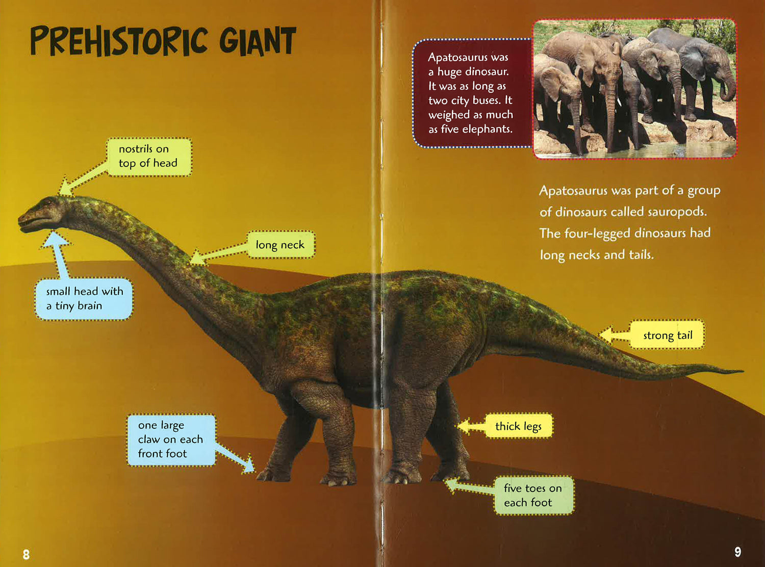 "Travel back to a time when dinosaurs roamed the earth. Feel the ground shake as the gigantic Apatosaurus thunders by. See the deadly Tyrannosaurus rex attack its prey with its razor-sharp teeth. New discoveries, old bones, and lots of amazing facts tell the stories of these prehistoric animals and their journey through time."--Cover.