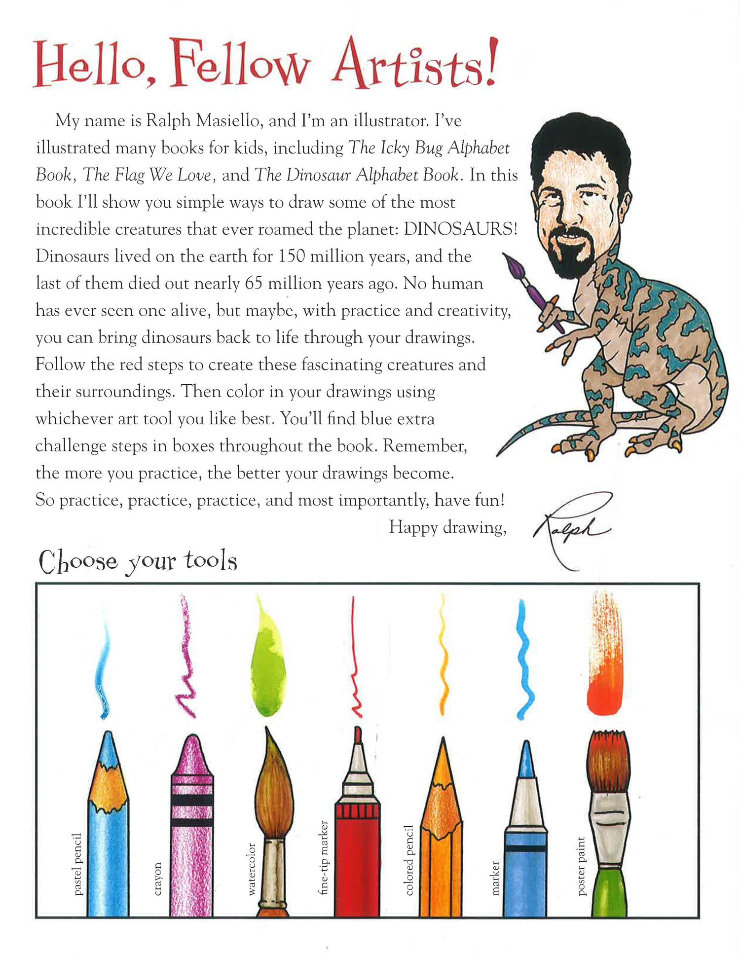 Dinosaurs roamed the earth 65 million years ago. Now you can bring them back to life in your drawings. Illustrator Ralph Masiello shows you how to draw all things dinosaur, from hatching dinosaur eggs to the mighty Tyrannosaurus Rex. Just follow the steps shown in red to create your own Jurassic world. With a few simple lines, you can draw a stegosaurus from head to spiky tail. Then you can add ferns and other prehistoric plants for it to eat. Bonus challenge steps show you how to make your drawings even more realistic.