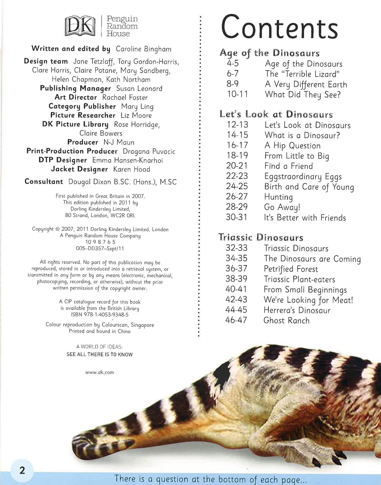 Explore prehistoric Earth and meet the dinosaurs.Find out what dinosaurs looked like, how they lived and why they no longer exist.Discover how experts learn about dinosaurs and other prehistoric animals from fossils See exciting photographs that bring history to life.Explore bite-sized facts and quiz questions that make learning fun.