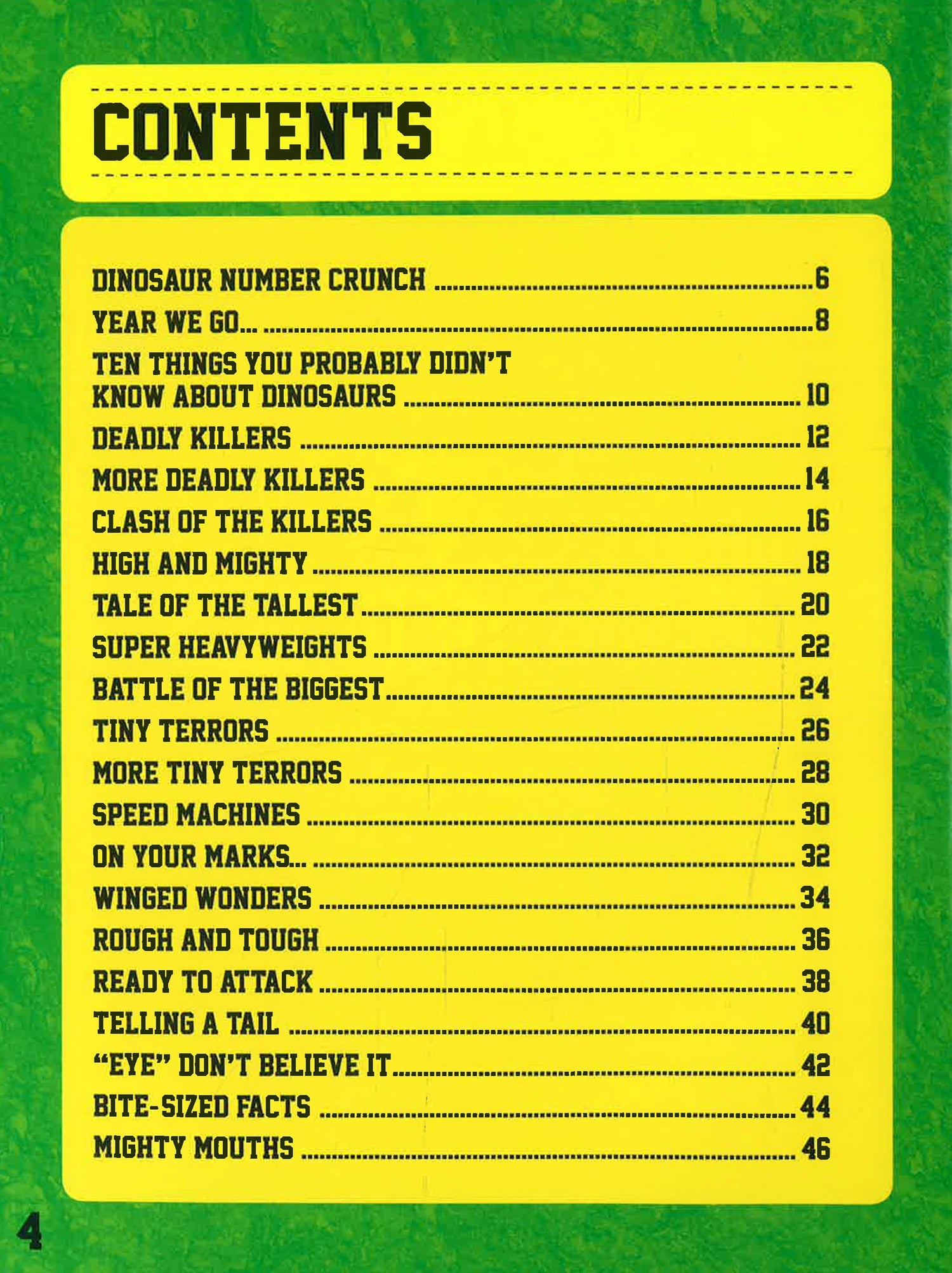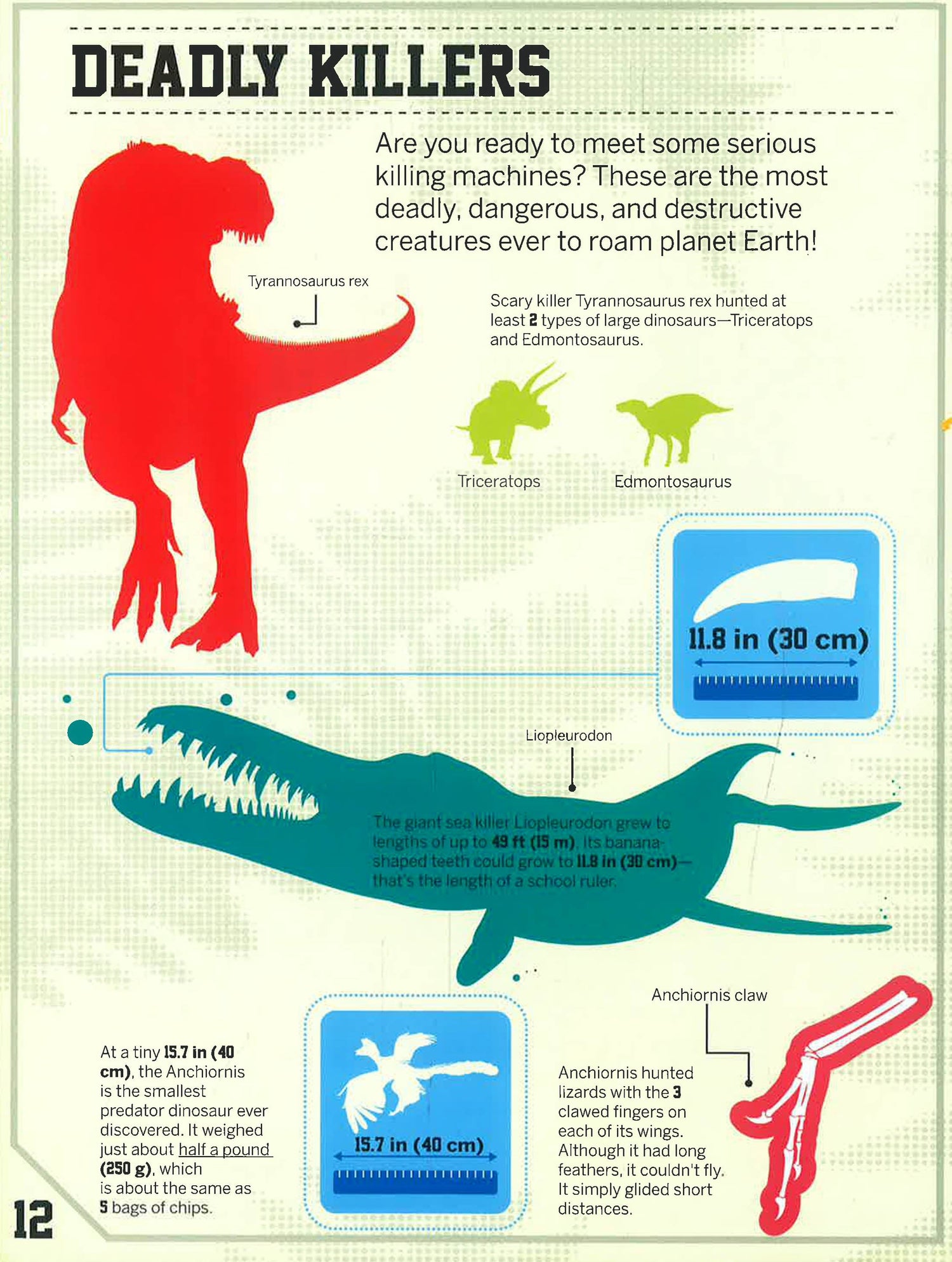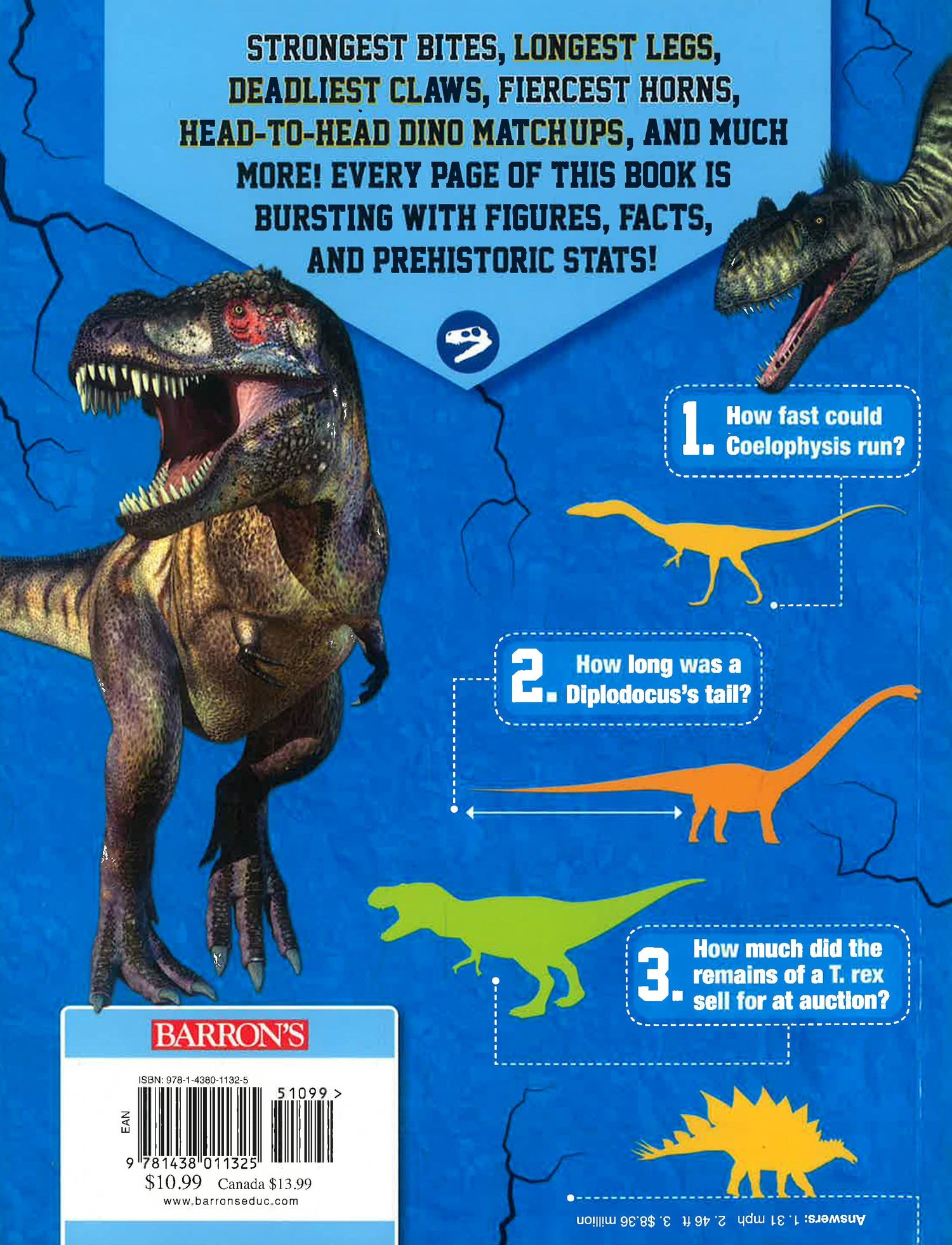 - 10 things you didn't know about dinosaurs, and so much moreEach piece of data is based around a number, creating an entire book of easy-to-understand information that will delight even the most reluctant readers. The comprehensive coverage includes key dinosaur facts and stats you need to know, from the dawn of the Triassic period 230 million years ago to their extinction 65 million years ago.