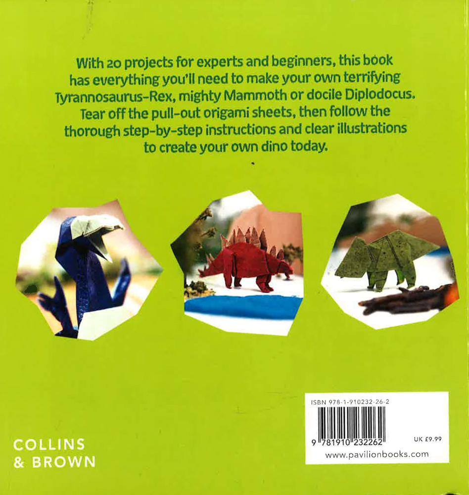 The most phenomenal discovery of our time becomes the greatest adventure of all time. Now you can create your very own Jurassic Park in the comfort of your home! Dinosaur Origami is a delightful and amusing collection of origami dinosaurs that will appeal to children and adults alike. Prehistoric favourites include a brooding Brontosaurus, a feisty triceratops and a ravaging Pterosauria. A menacing T-Rex would impress the most discerning pint-sized Paleontologist. A brief profile accompanies each project to make the learning process fun and easy whilst thorough step-by-step instructions guide through the fold process from start to finish. In addition to dinosaurs, other projects in the book include ancient palm trees, Neanderthal Man, a volcano and fire. For those new to origami, a section about paper and folding symbols make the process a breeze. A classification chart and dateline will keep you current and on top of your dinotrivia, handy origami sheets at the back of the book means you have everything you need at your finger tips. With a bounty of fun-loving projects and vibrant photographs, the projects are not just folded forces of nature, but origami favourites which are destined classics. Suffice to say, it's dino-mite