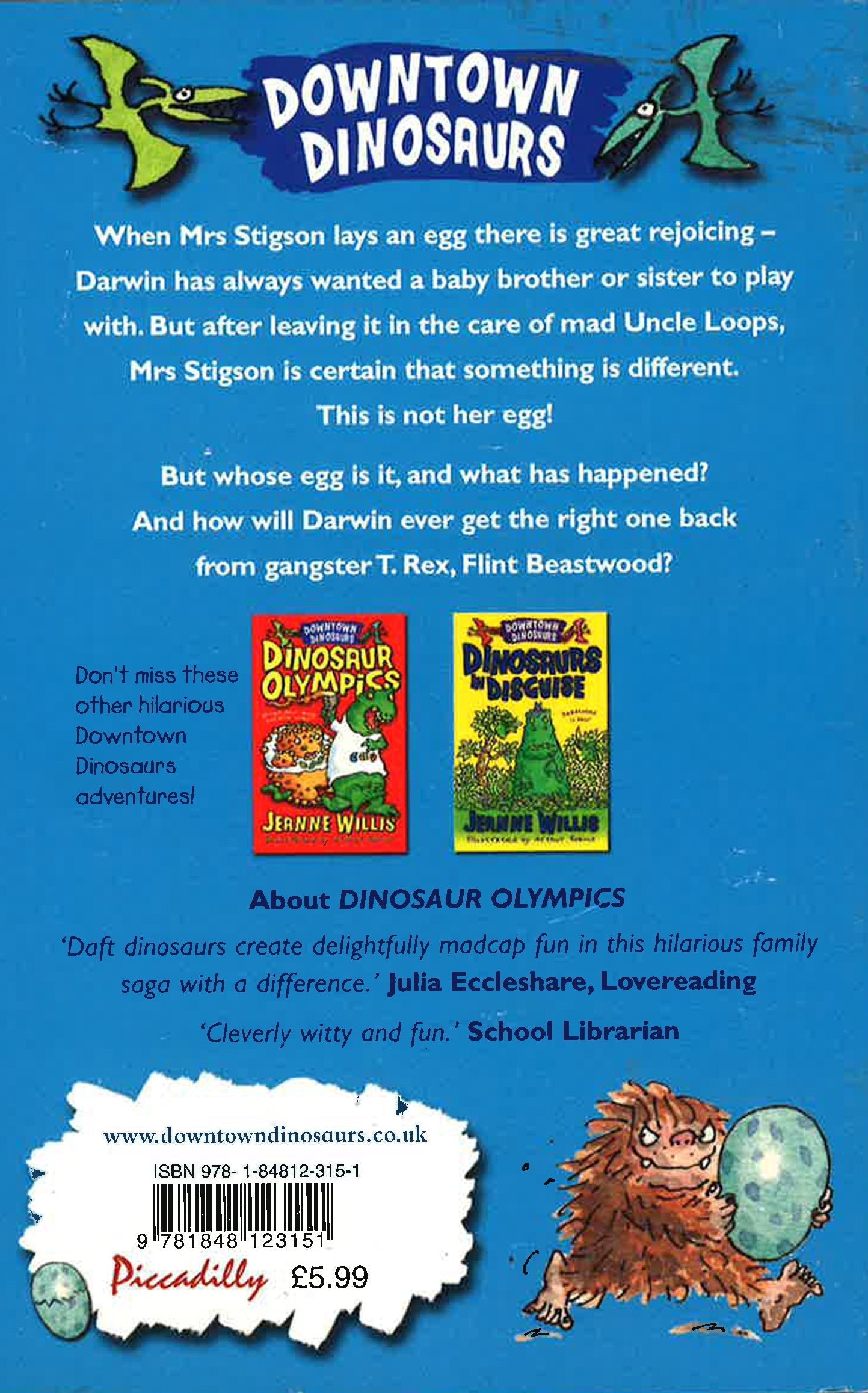 A sneaky 'big egg' swap leads to a hairy and hilarious hunt for the real thing! When Mrs Stigson the Stegosaurus lays an egg there is great rejoicing - Darwin always wanted a baby sister. But leaving mad Uncle Loops in charge of egg-sitting is not a good idea. On her return, Mrs Stigson is certain that it is not the egg she laid. Darwin is determined to get to the bottom of it and suspects a certain gangster T-rex is behind the swap. But which is the 'real' Stegasaurus egg? And what will stop Flint Beastwood from smashing it on his wedding day? Jeanne Willis's madcap characters and story, with Arthur Robins' inspired illustration, are certain to tickle anyone's funny-bone!