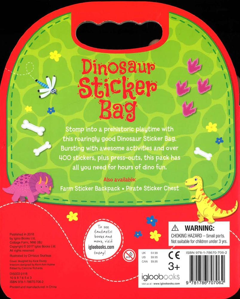 Stomp into a prehistoric playtime with this roaringly good Dinosaur Sticker Bag. Bursting with awesome activities and over 400 stickers, plus press-outs, this pack has all you need for hours of dino fun. (Age Range 3-6)