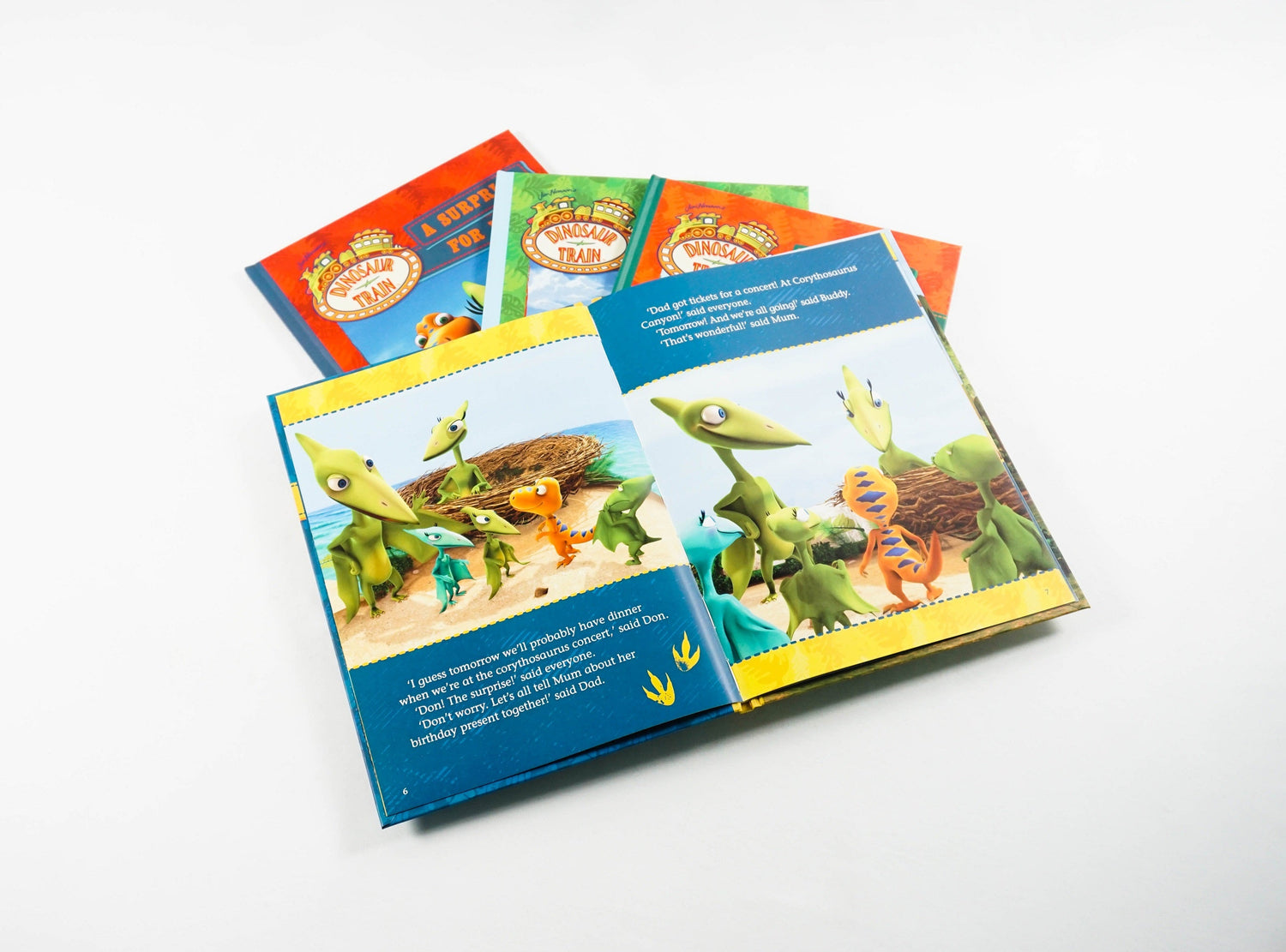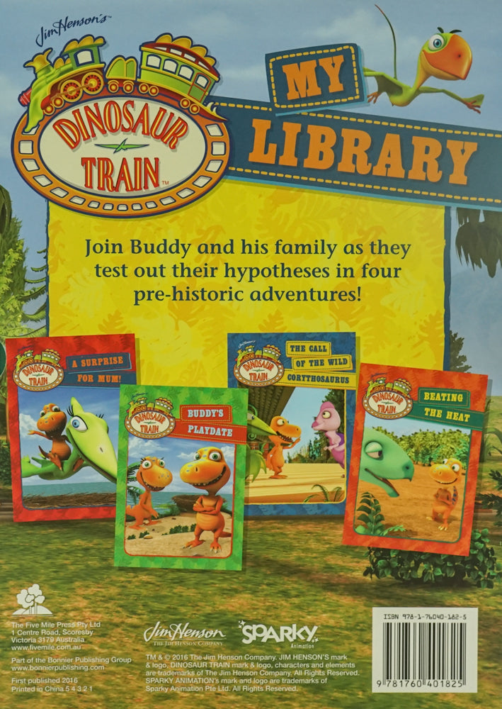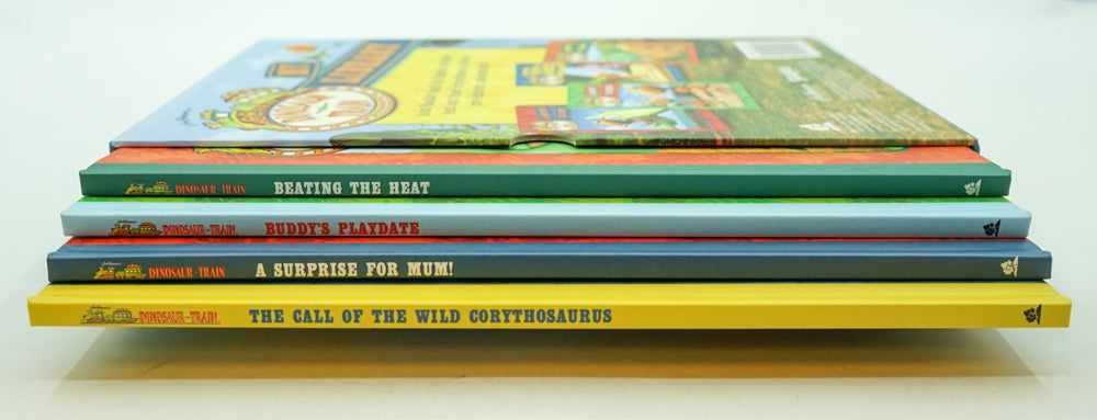 Buddy finds out how stegosuaruses stay cool, Tiny learns about family, Don can't keep a secret and Mum gets a day off!Titles: Beating the Heat; Buddy's Playdate; A Surprise for Mum!; Call of the Wild Corythosaurus. Kids discover something new in each story, whether it's a life lesson or a scientific fact.The Dinosaur Train characters help kids role play social challenges in a fun and safe environment.This gorgeous slipcase features brand new stories!Dinosaur Train combines two things that pre-schoolers love - dinosaurs and trains! T-rex, Buddy, and his Pteranodon siblings take kids on a journey of discovery - testing out their hypotheses and uncovering facts about life-science, natural history and paleontology. This brand is supported by a popular TV show, a website full of games and extra content, a terrific toy line and live shows (coming soon to a shopping centre near you!).