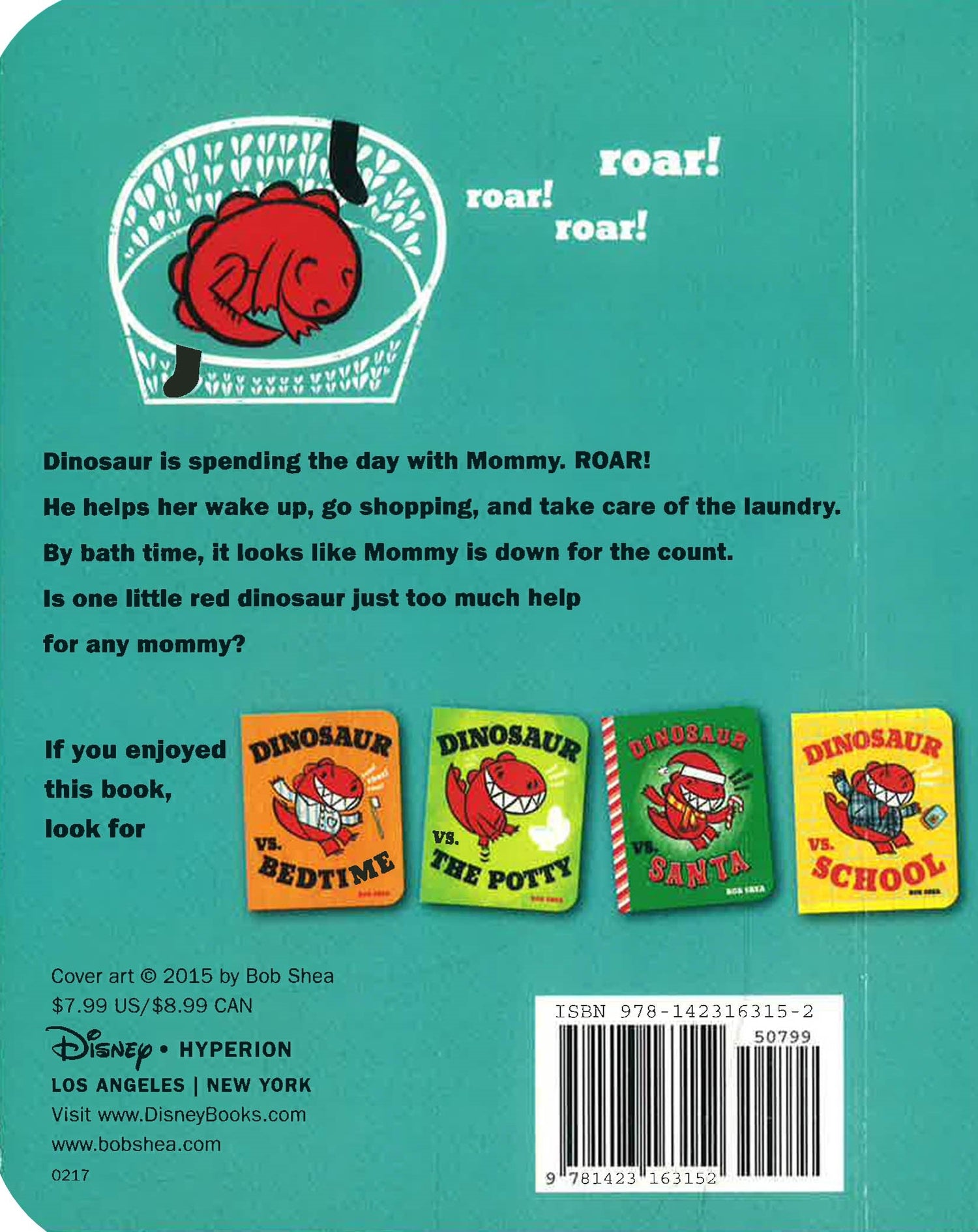 Dinosaur is spending the day with Mommy. ROAAR! He helps her wake up, go shopping, sort laundry, and more--his way, that is. By bedtime, it looks like Mommy is down for the count. Is one little red dinosaur just too much for her, or will Mommy win? Chock full of the bold graphics and exuberance that has made the Dinosaur vs. series so popular, favorite funny man Bob Shea delivers another winner--for both little dinosaurs, and mommies everywhere!