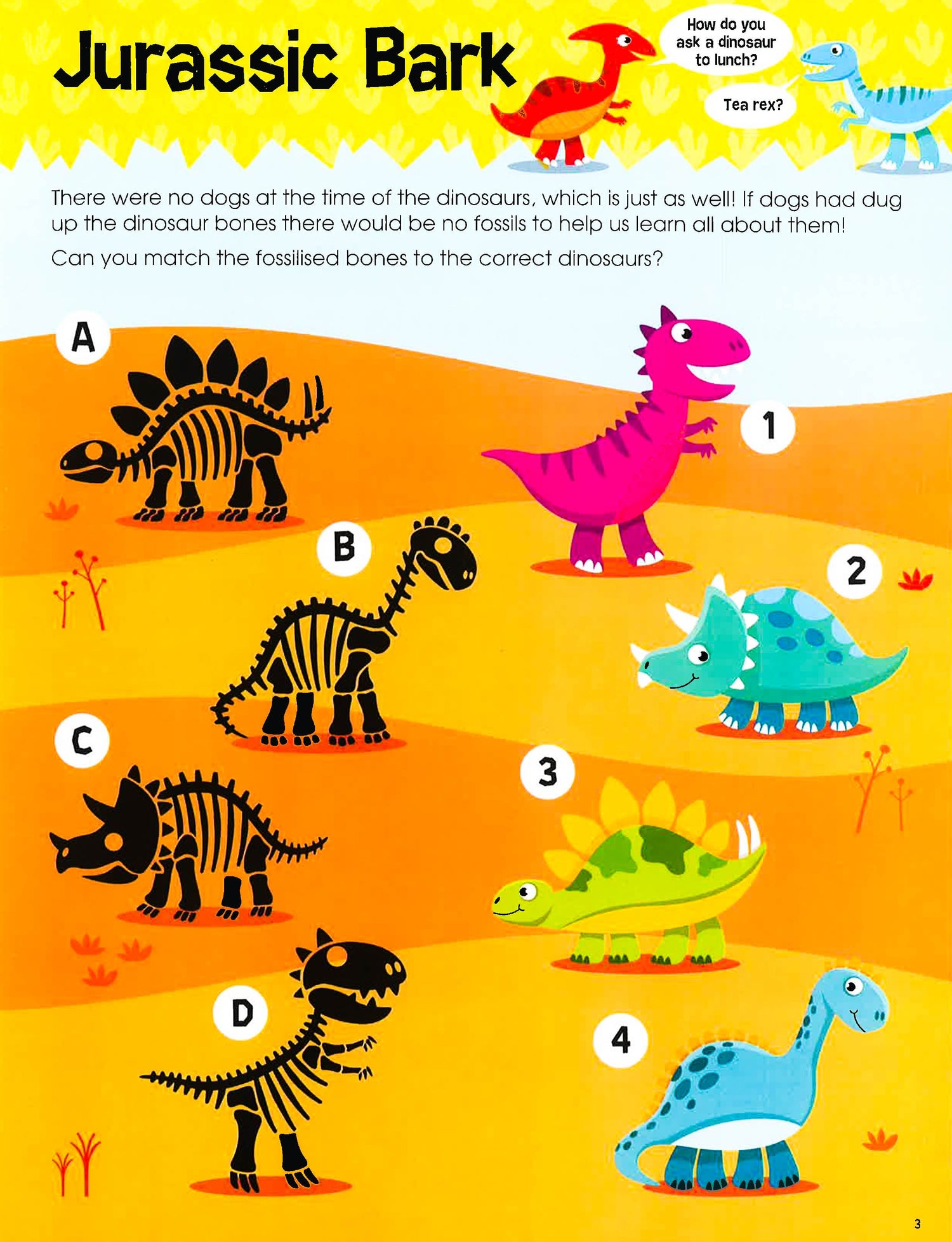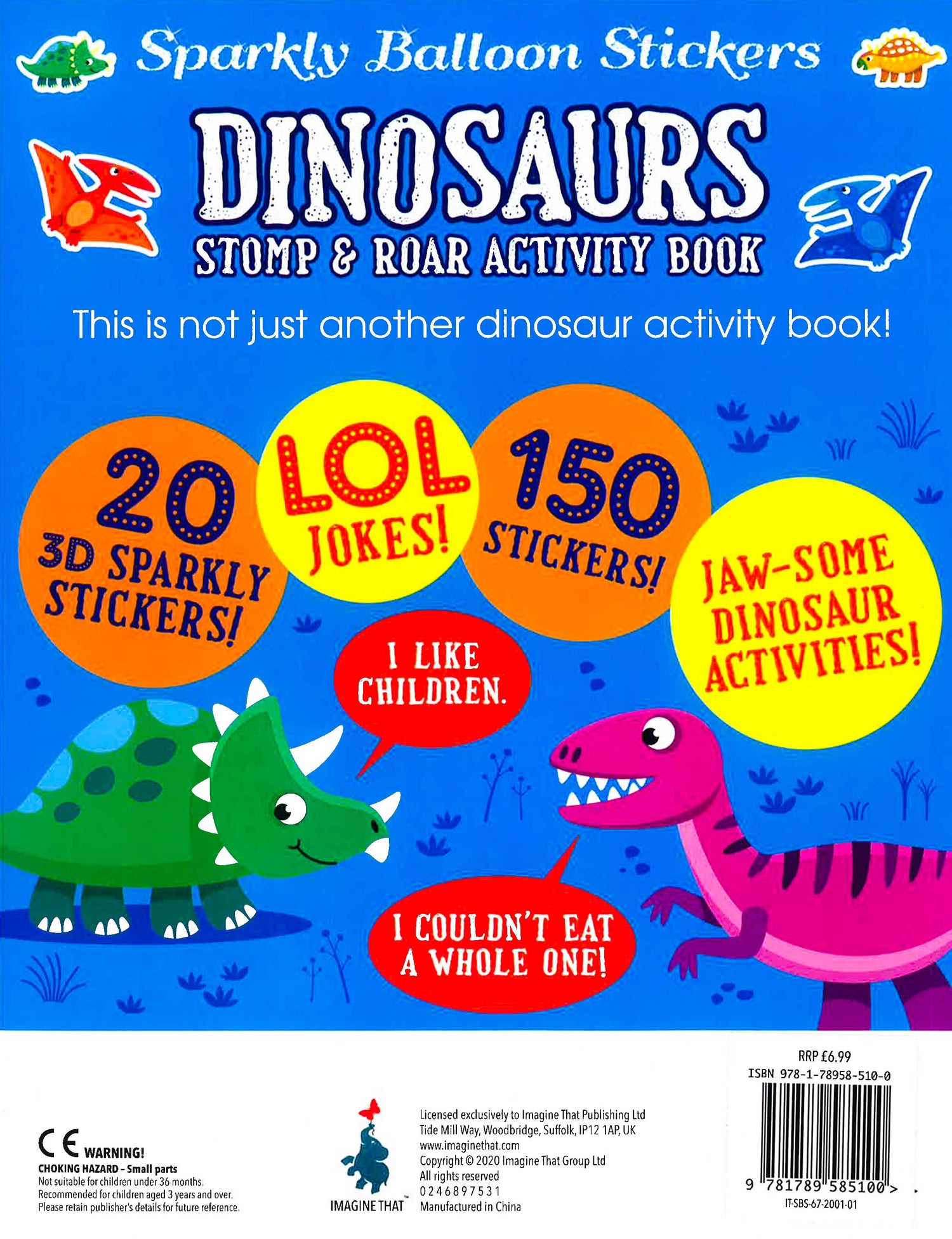 A stomp and roar activity book packed with roar-some dinosaur activities and jokes, over 100 stickers and 20 sparkly 3D balloon stickers!With dinosaur-themed activities, colourful stickers, hilarious jokes and 3D sparkly stickers - this is not just another dinosaur activity book ... this is a stomp and roar dinosaur activity book! There are funny jokes to make you laugh out loud, and over 100 colourful dinosaur stickers to find, choose and position as you complete the roar-some puzzles and activities. Have sticker fun with the 20 sparkly 3D balloon stickers and use them to decorate your books, your stuff ... anything you like!