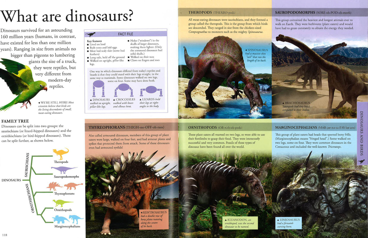 Travel back in time to learn about every kind of dinosaur with this comprehensive dinosaur book for children. With nearly 400,000 copies sold Dinosaurs: A Children's Encyclopedia is a global best-seller. It includes detailed fact files and colour illustrations of more than 320 species. Discover the biggest, the scariest, and the strangest animals ever to inhabit our world, from Triceratops and Tyrannosaurus to horse-eating prehistoric birds and giant millipedes the size of crocodiles. Find out exactly where and when each animal lived, how large it grew, and how it captured prey or fought off enemies. Expert-verified reconstructions reveal what each dinosaur looked like, and many of the entries are accompanied by beautiful images of detailed fossils. This dinosaur encyclopedia covers not just the dinosaurs but the whole range of prehistoric life from the origin of life to the Ice Age. The animal pages are supplemented by feature pages exploring topics related to prehistoric life, such as the study of fossilized dung and footprints, how the process of evolution works, and how Earth's climate and continents have slowly changed through billions of years of time. Dinosaurs: A Children's Encyclopedia is the book every budding fossil hunter and dinosaur enthusiast will want to own.
