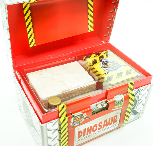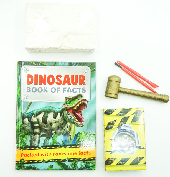 This ferociously terrifying box for all the young Dino lovers in the world.Join in on the adventure of a lifetime and discover the deadliest, most unrelenting dinosaurs to have ever walked upon the earth, all within this box. Contains: Fossil excavating kit, Super fact-file game cards, and an expert fact and activity book. There are endless hours of discovery inside this unnerving box of adventure.The perfect gift for your young dinosaur lover and everyday wannabe explorer.