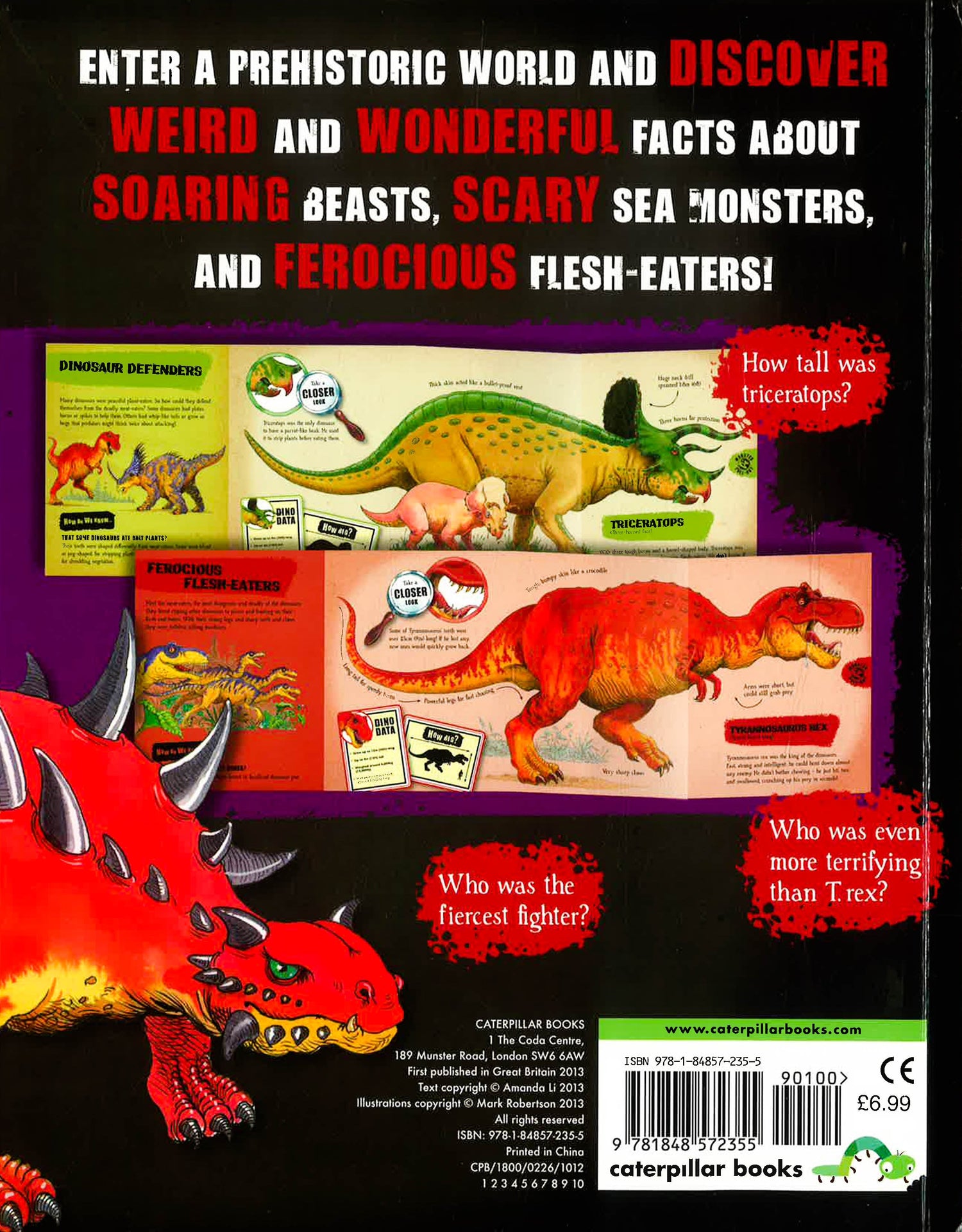 Dinosaurs Alive! A monster book that is over-flowing with facts and perfect for any dinosaur obsessed child. Enter a prehistoric world and discover weird and wonderful facts about soaring beasts, scary sea monsters and ferocious flesh-eaters! With giant fold-out pages full of dinosaur facts and dinosaur data, close-ups and explanations of how dinosaur history was uncovered, this fantastic book is jam-packed with information for young dinosaur fans.
