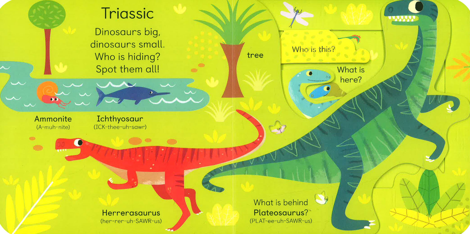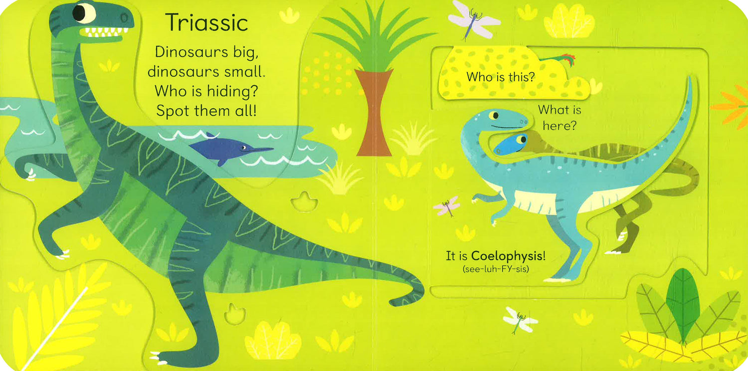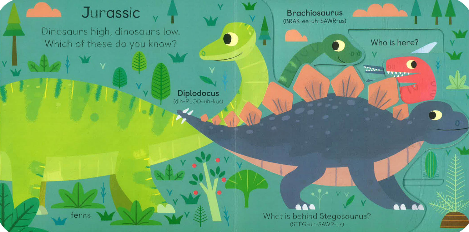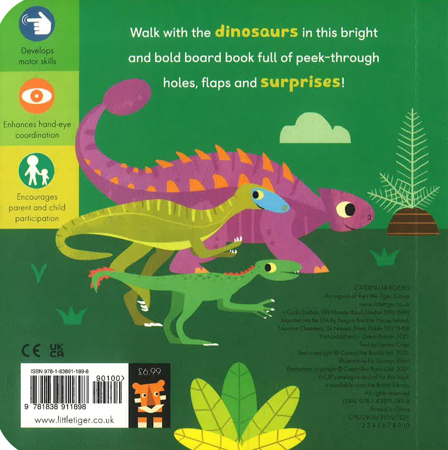 Walk with the dinosaurs in this bright and bold board book full of peek-through holes, flaps and surprises!