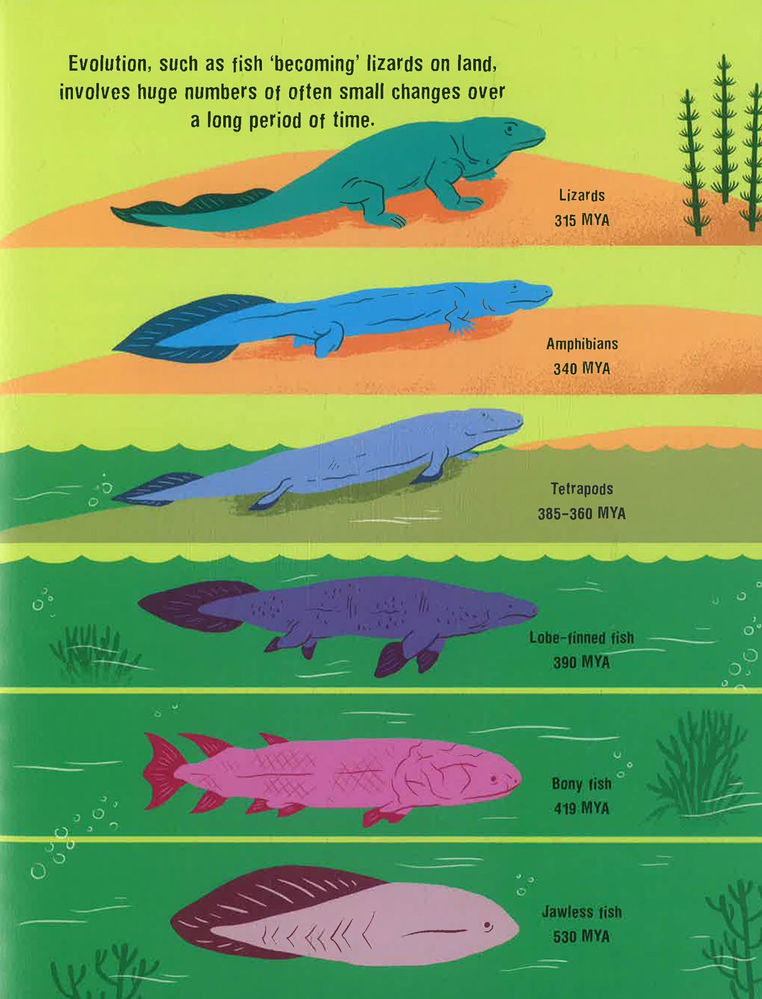 This fresh and exciting book takes young readers on a fascinating journey from the development of the first life forms on the planet to the emergence of the dinosaurs – and their eventual extinction. 30 key topics explore these fascinating creatures, how they evolved, what they ate, their social behaviour, what they looked like, and how we have come to understand them from their fossilized remains.