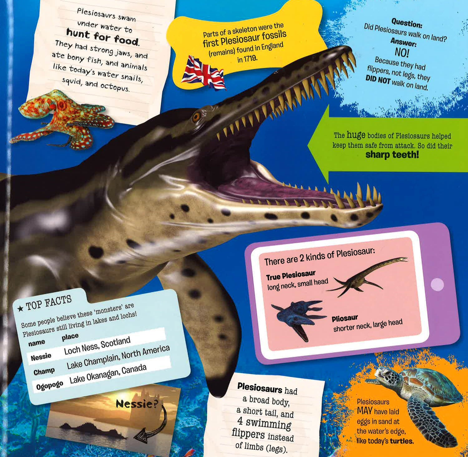 Which dinosaurs ate meat? Which moved fast? Find the answers to these questions among more than 100 top facts about the incredible giants that walked, ran, swam, flew, and fought on earth millions of years ago - dinosaurs.