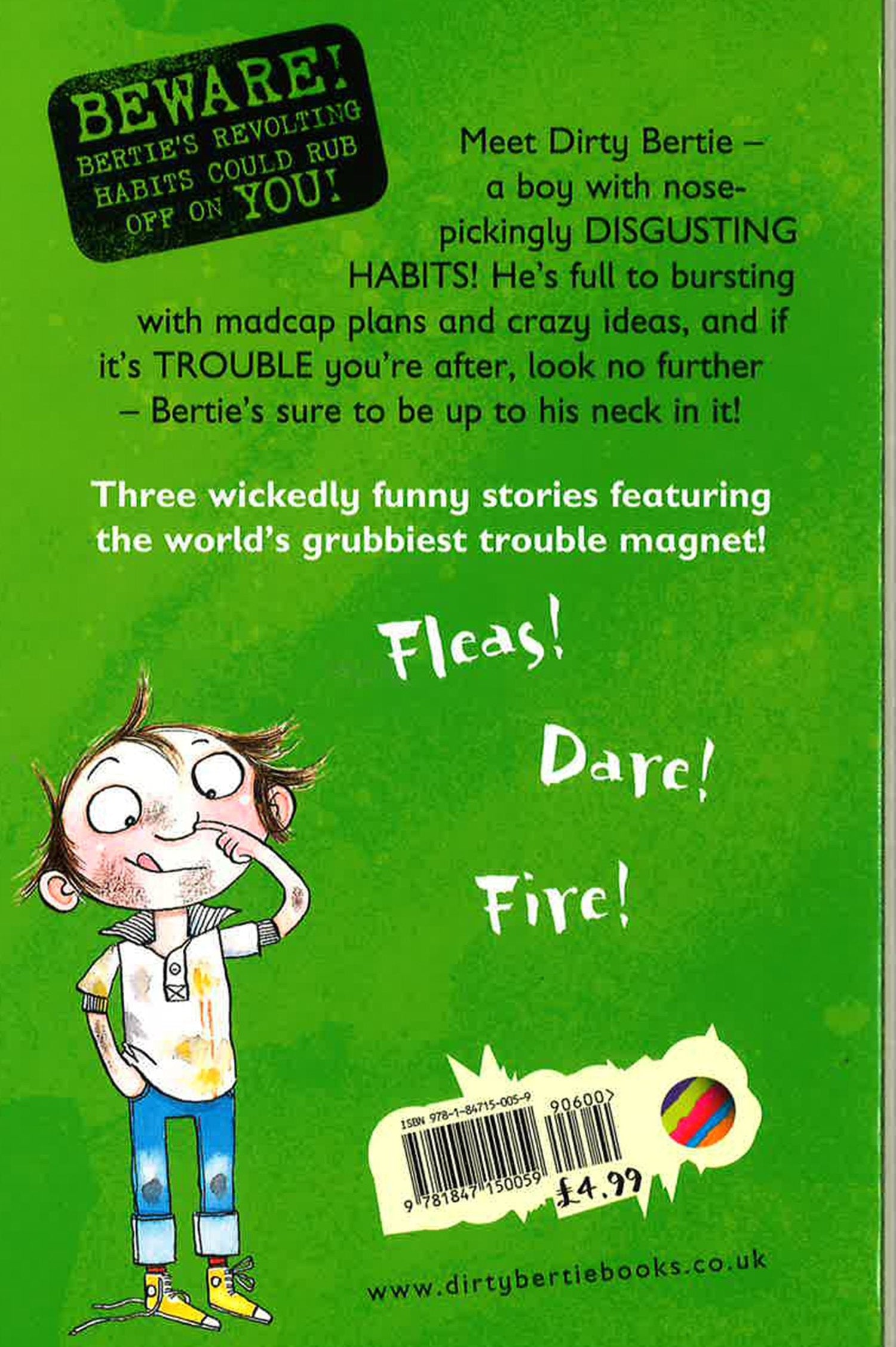 Meet Dirty Bertie - a boy with nose-pickingly disgusting habits! He's full to bursting with madcap plans and crazy ideas, and if it's trouble you're after, look no further - Bertie's sure to be up to his neck in it. Join Bertie as he takes a flea-ridden Whiffer to the vet, does a naughty dare at school and gets a ride in shiny red fire engine!