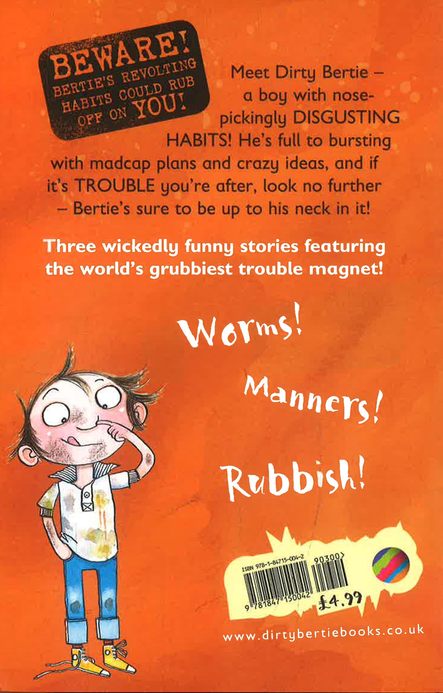 Meet Dirty Bertie - a boy with nose-pickingly disgusting habits! He's full to bursting with madcap plans and crazy ideas, and if it's trouble you're after, look no further - Bertie's sure to be up to his neck in it. Join Bertie as he tries to get out of a pink party, fails to be polite for a whole day and a makes really rubbish entry into the summer fair's flower arranging competition...