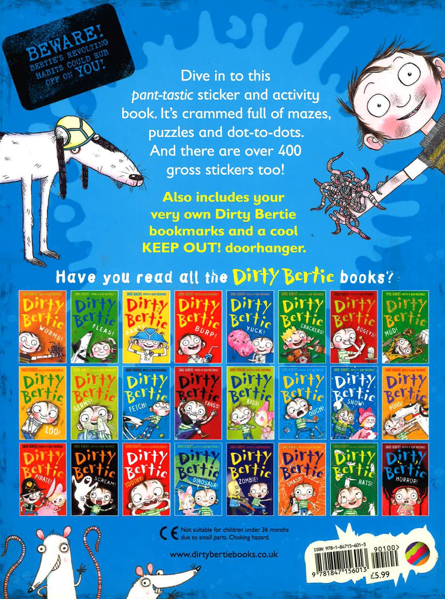 This brilliant full-colour sticker and activity book will tickle all Dirty Bertie fans aged five and up! Crammed with puzzles, mazes, dot-to-dots and, of course, pants! Includes over 400 stickers.