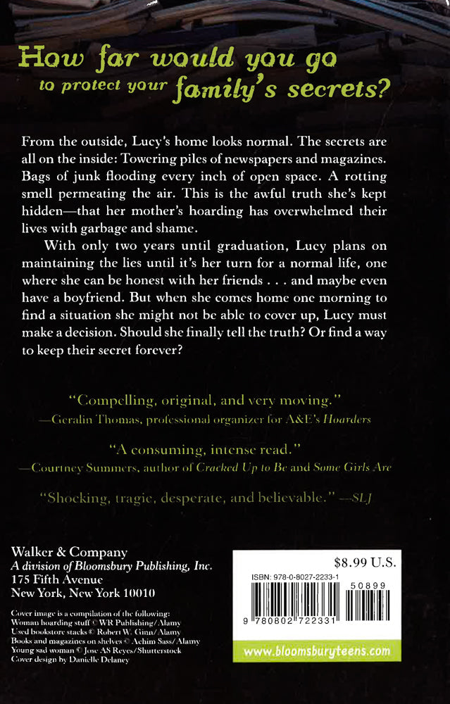 Everyone has a secret. But Lucy's is bigger and dirtier than most. It's one she's been hiding for years-that her mom's out-of-control hoarding has turned their lives into a world of garbage and shame. Tackling an increasingly discussed topic that is both fascinating and disturbing, C. J. Omololu weaves an hour-by-hour account of Lucy's desperate attempt to save her family. Readers join Lucy on a path from which there is no return, and the impact of hoarding on one teen's life will have them completely hooked.