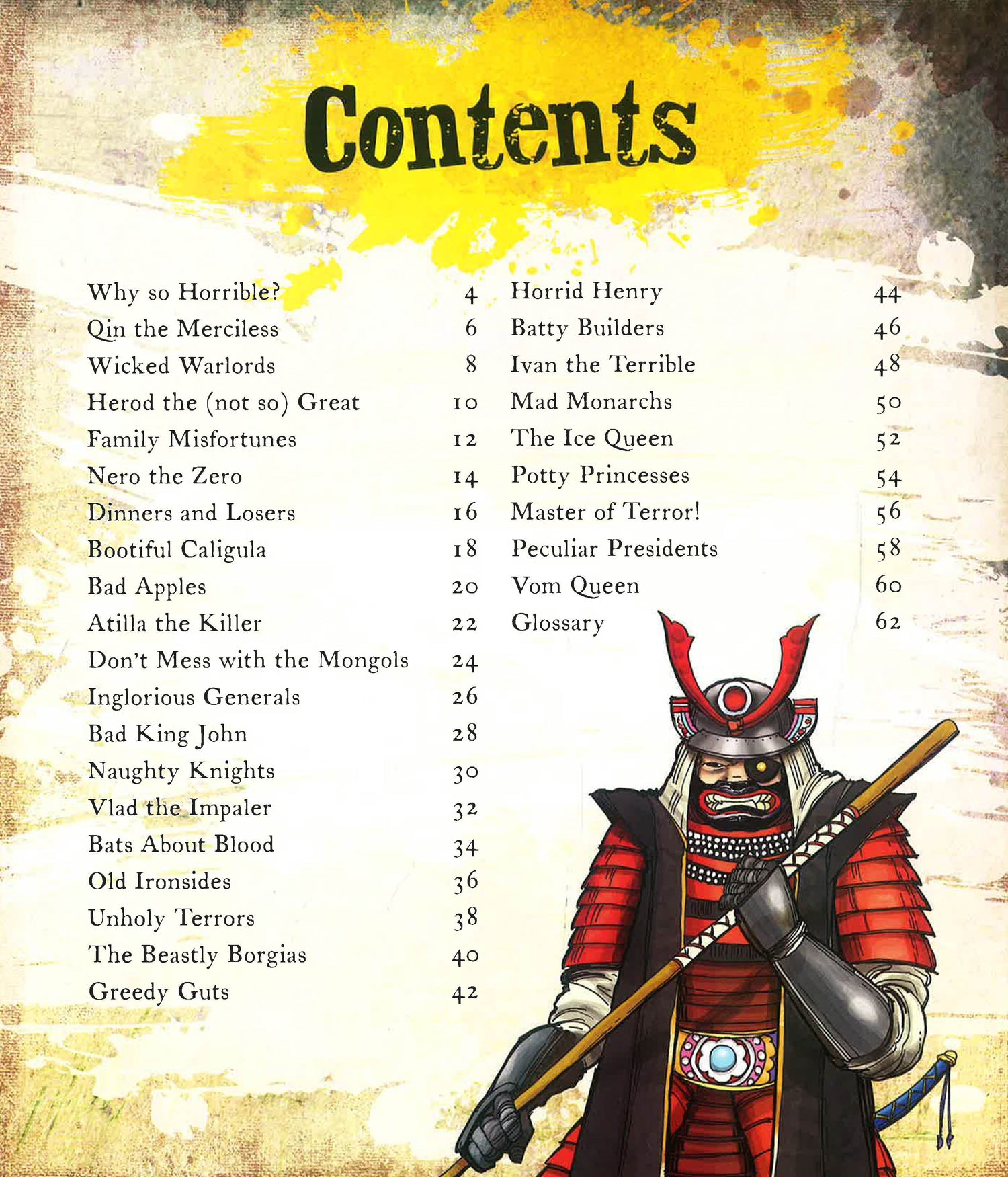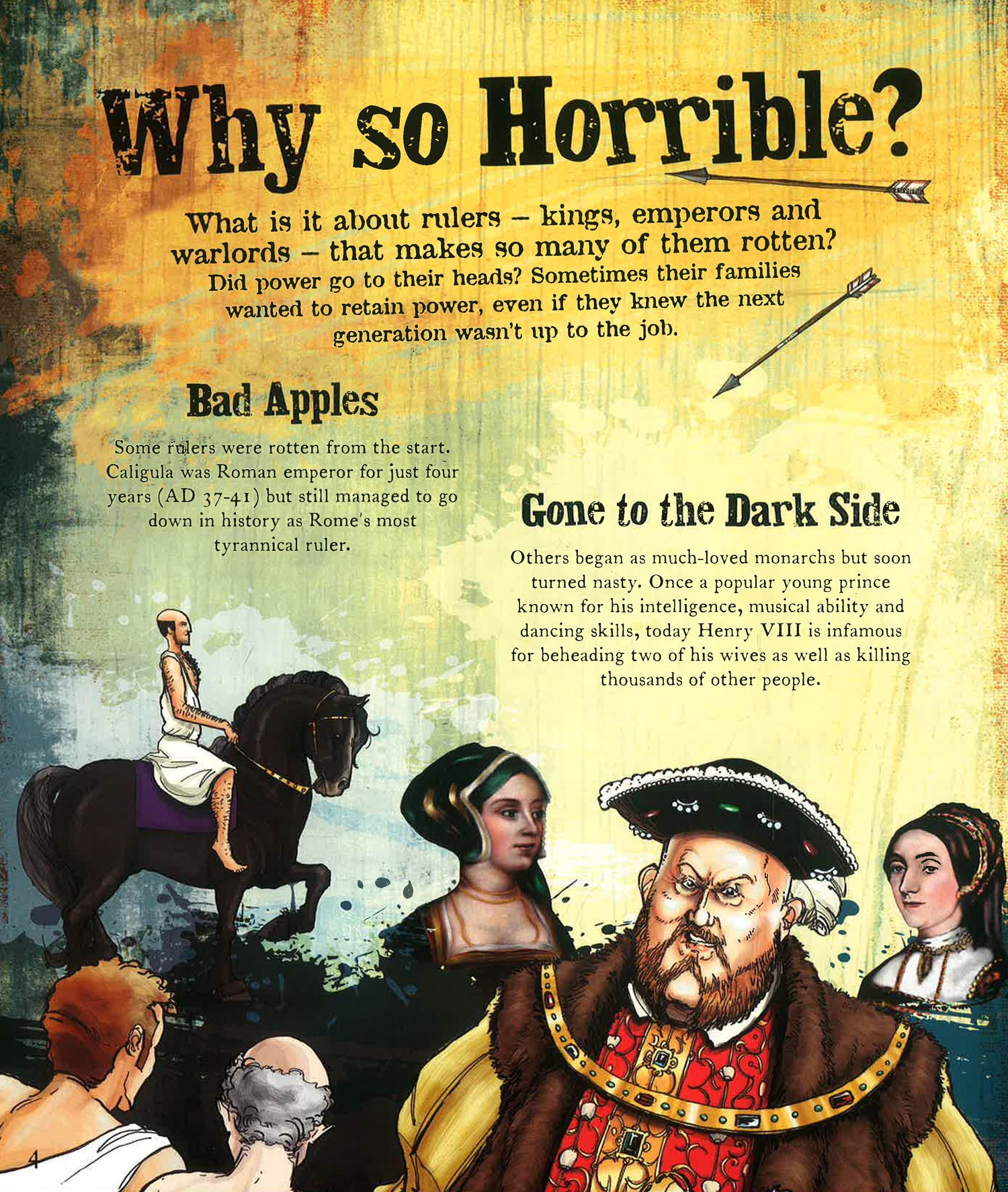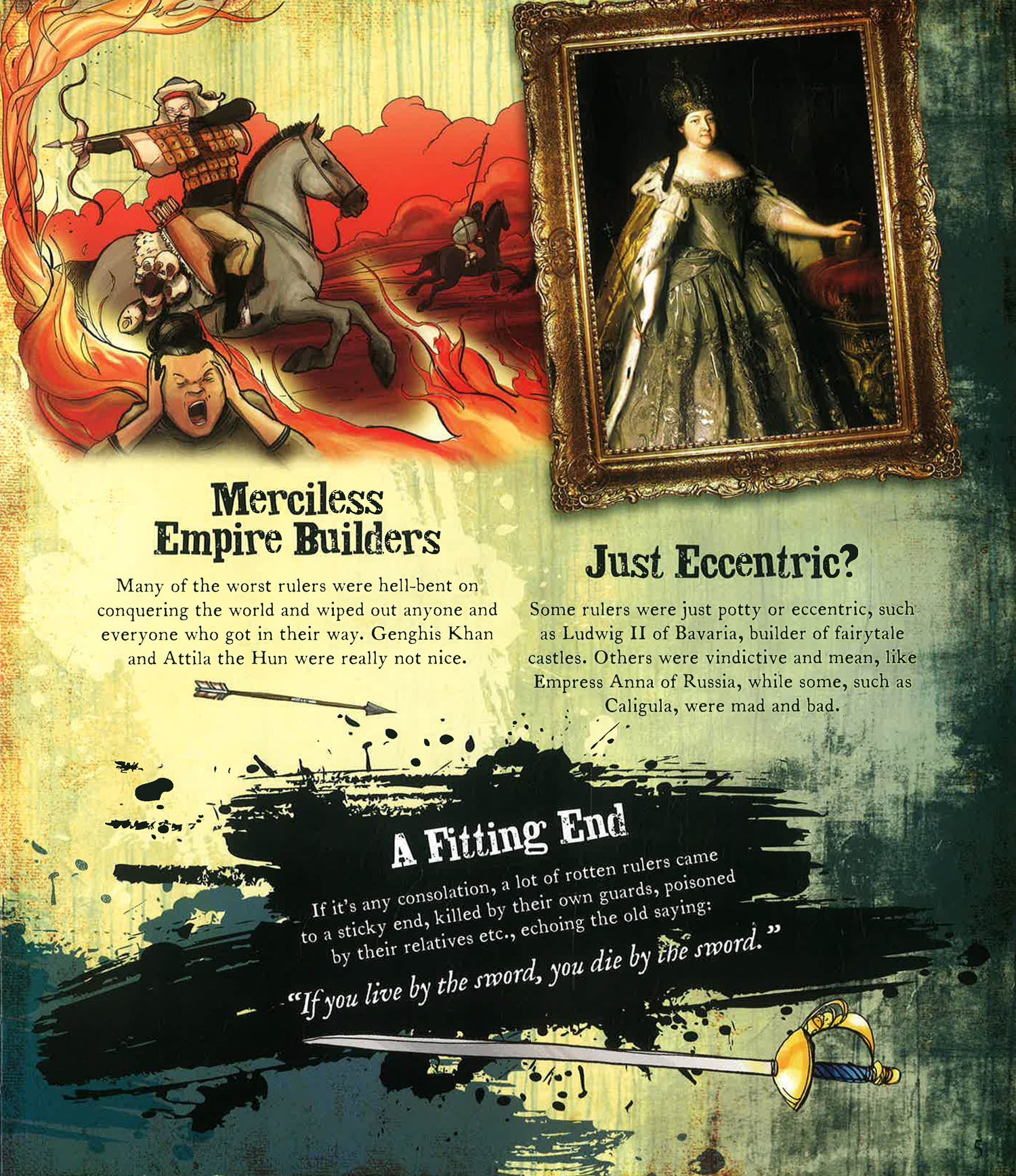 They might have been glamorous but they were grimy with it! Take a trip back through history and uncover the filth of the pharaohs, the horrors of Henry VIII and the vileness of Vlad in this warts-and-all story of the world's most infamous rulers. With amazingly detailed illustrations from a world renowned artist and sharp, bite-sized text, this lavish look inside the minds of the mad is an absolute must-read for children.
