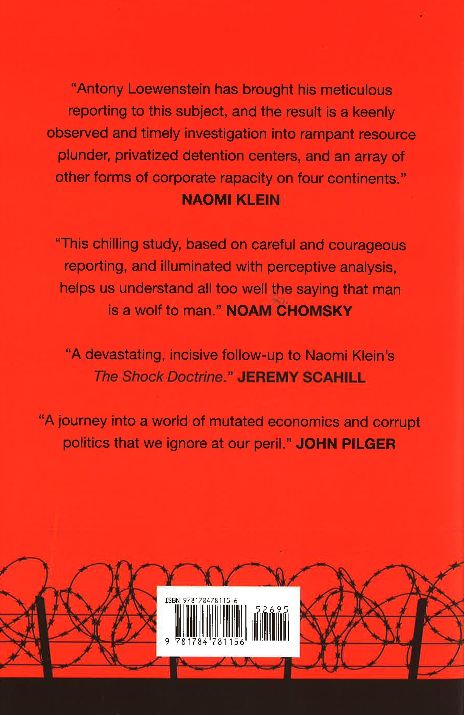 Best-selling journalist Antony Loewenstein trav-els across Afghanistan, Pakistan, Haiti, Papua New Guinea, the United States, Britain, Greece, and Australia to witness the reality of disaster capitalism. He discovers how companies such as G4S, Serco, and Halliburton cash in on or-ganized misery in a hidden world of privatized detention centers, militarized private security, aid profiteering, and destructive mining. Disaster has become big business. Talking to immigrants stuck in limbo in Britain or visiting immigration centers in America, Loewenstein maps the secret networks formed to help cor-porations bleed what profits they can from economic crisis. He debates with Western contractors in Afghanistan, meets the locals in post-earthquake Haiti, and in Greece finds a country at the mercy of vulture profiteers. In Papua New Guinea, he sees a local commu-nity forced to rebel against predatory resource companies and NGOs. What emerges through Loewenstein's re-porting is a dark history of multinational corpo-rations that, with the aid of media and political elites, have grown more powerful than national governments.In the twenty-first century, the vulnerable have become the world's most valu-able commodity.