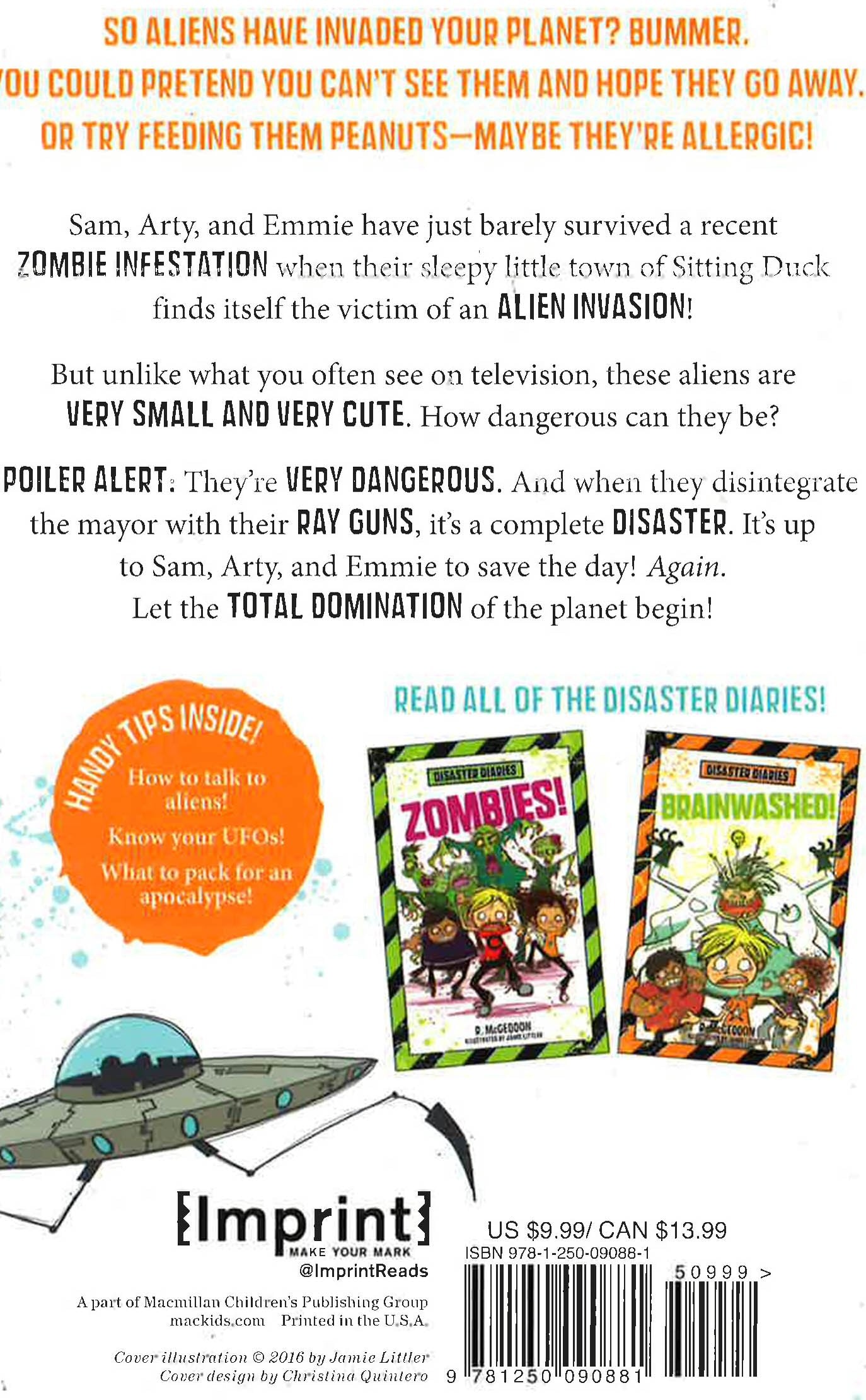 This series from author R. McGeddon is a must for young readers who plan on surviving the highly probable alien invasion that should be happening somewhat soon-ish. Disaster Diaries: Aliens! offers helpful tips to survive this encounter. (Hint: Pretend you can't see the alien and hope it goes away). In fact, your very life may depend on experiencing the laugh-out-loud hijinks and catastrophic escapades that can only be found in the town of Sitting Duck.