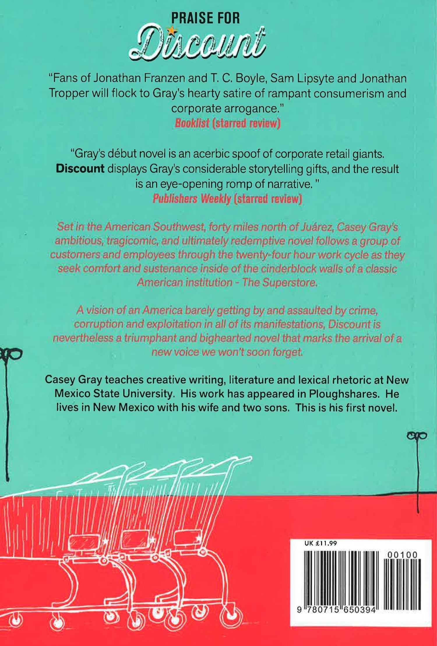 On the eve of the company president's visit to the store, a manager's drunk text to a coworker leads to a series of consequences as brutal as they are wide-ranging: Everyone around him will be affected. With a cast of characters featuring Ernesto, a local gang member struggling to choose a job pushing carts over a desultory life as a drug dealer; Wilma, a grandmother working double shifts to support her family; and Keith, a high school student with a penchant for filmmaking, Gray offers a startlingly humane, utterly contemporary portrait of life on the suburban fringe. A vision of an America barely getting by and assaulted by crime, corruption, and exploitation in all of its manifestations, Discount is nevertheless a triumphant and big-hearted novel that marks the arrival of a new voice we won't soon forget.