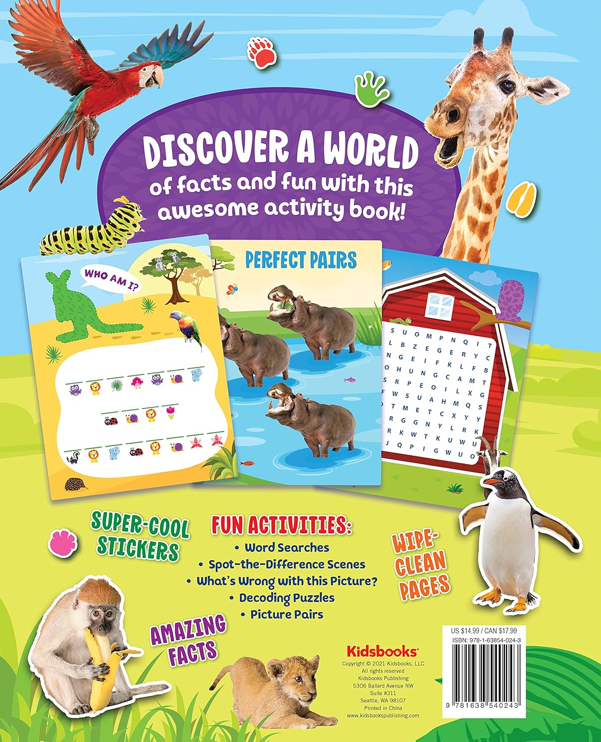 Discover a world of facts and fun with this awesome wipe-clean activity book. Explore the magnificent animal kingdom through activities such as word searches, spot-the-difference scenes, dot-to-dots, mazes, decoding puzzles, unique sticker activities, and more. And with interesting facts included throughout, learning has never been so fun!