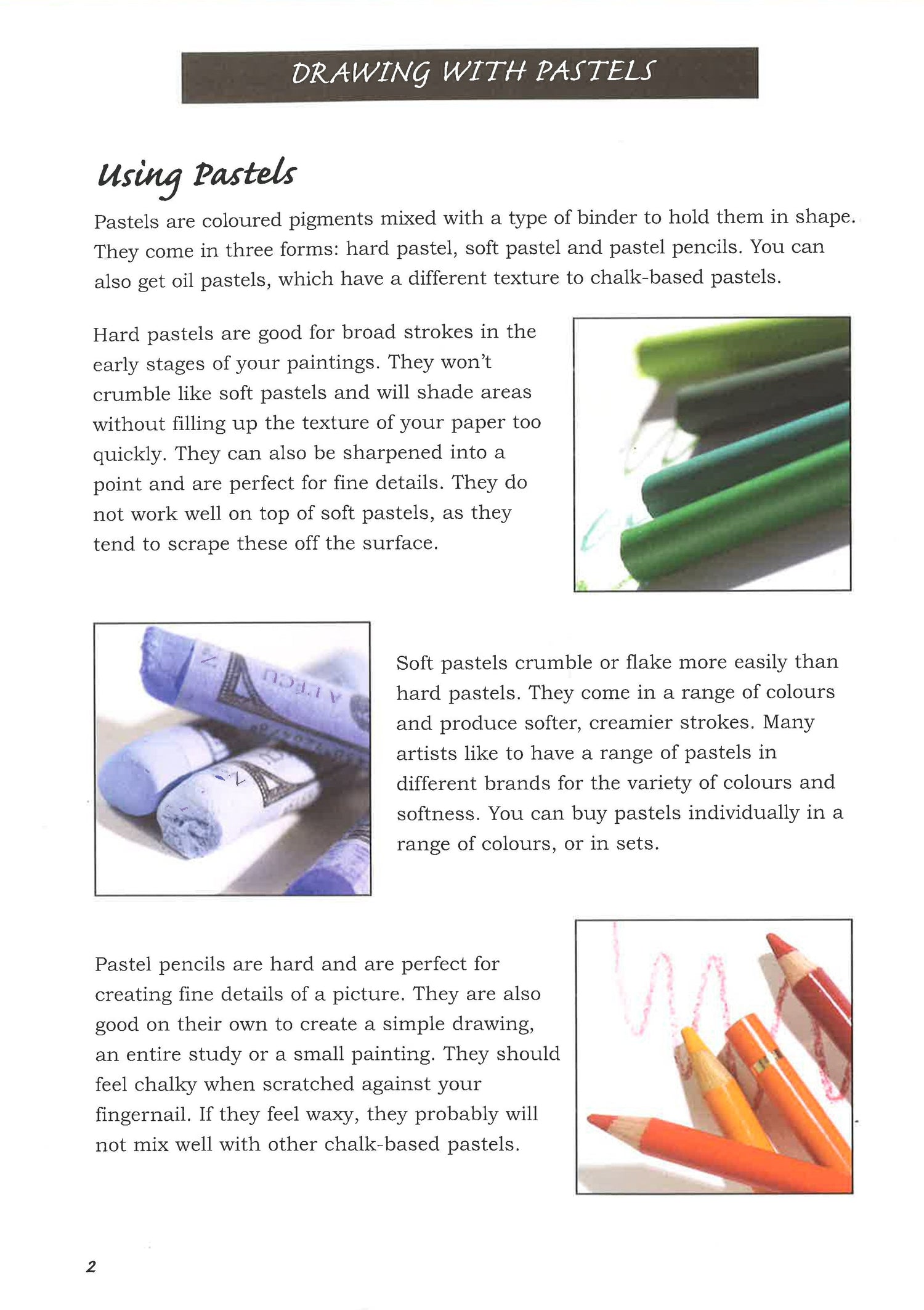 While artists have used soft pastels since the 17th century, the medium is a popular choice of many modern artists who like the spontaneity and action of quick painting in full color on paper. There are two types of pastels: oil pastels and soft pastels