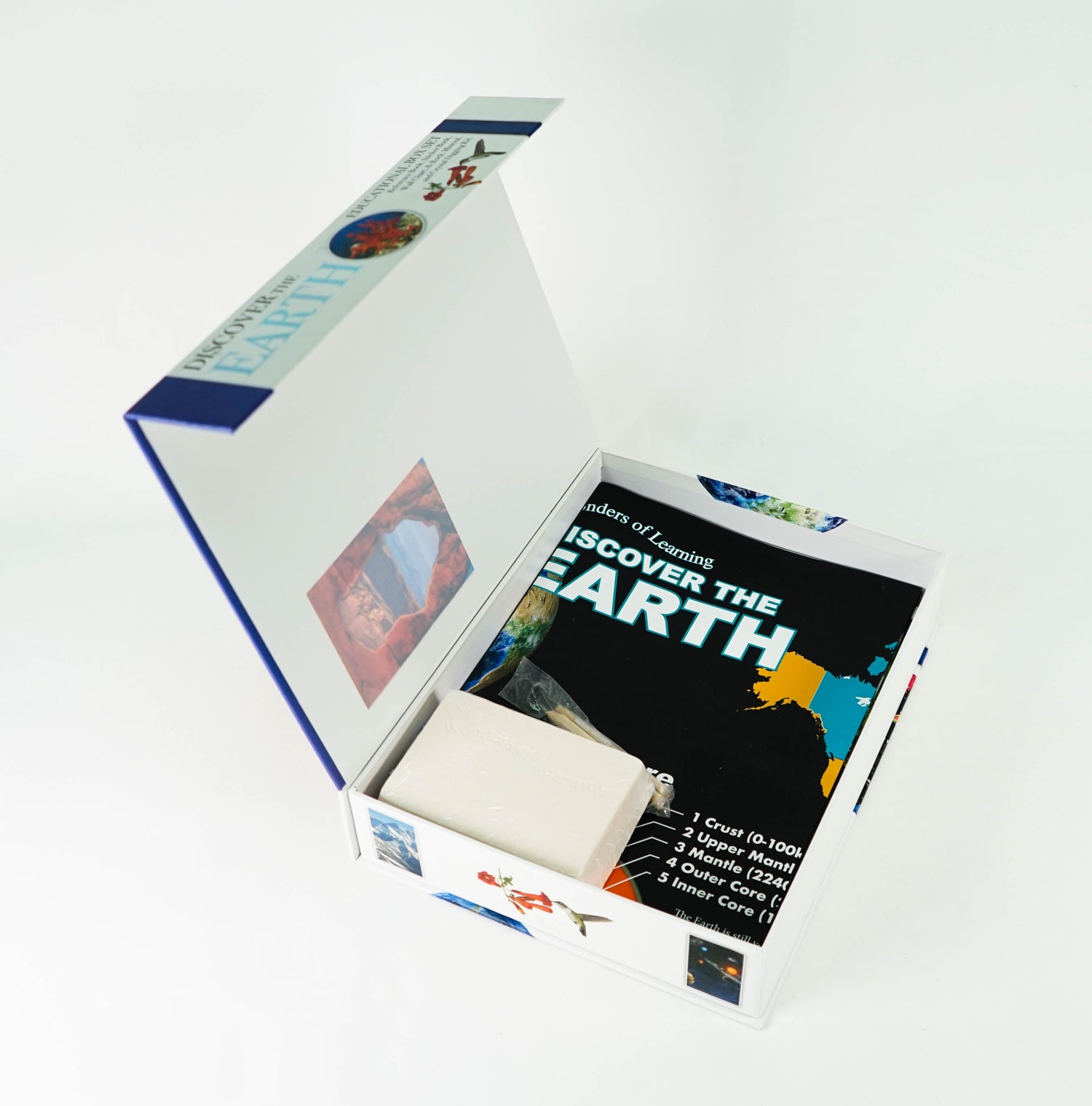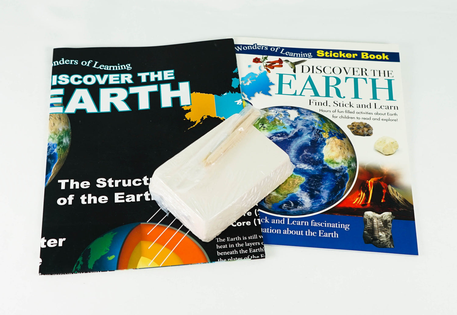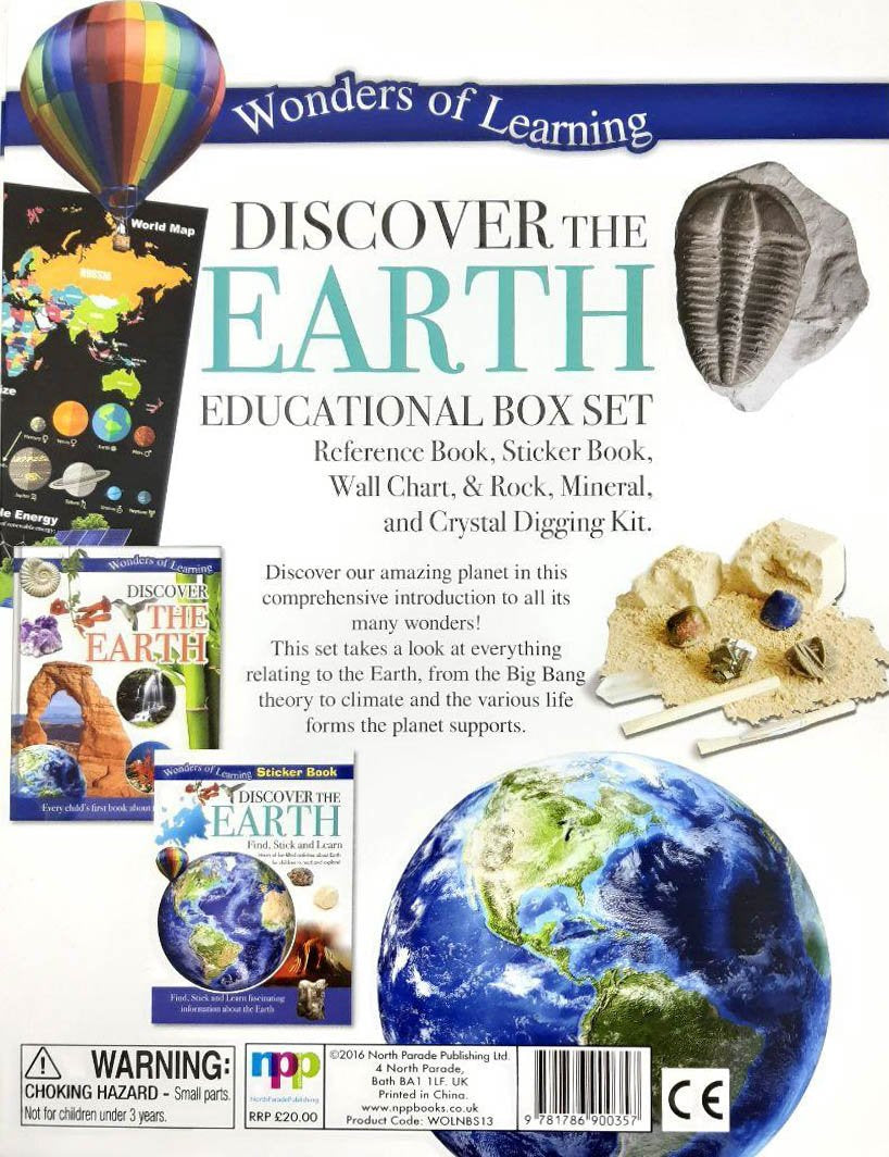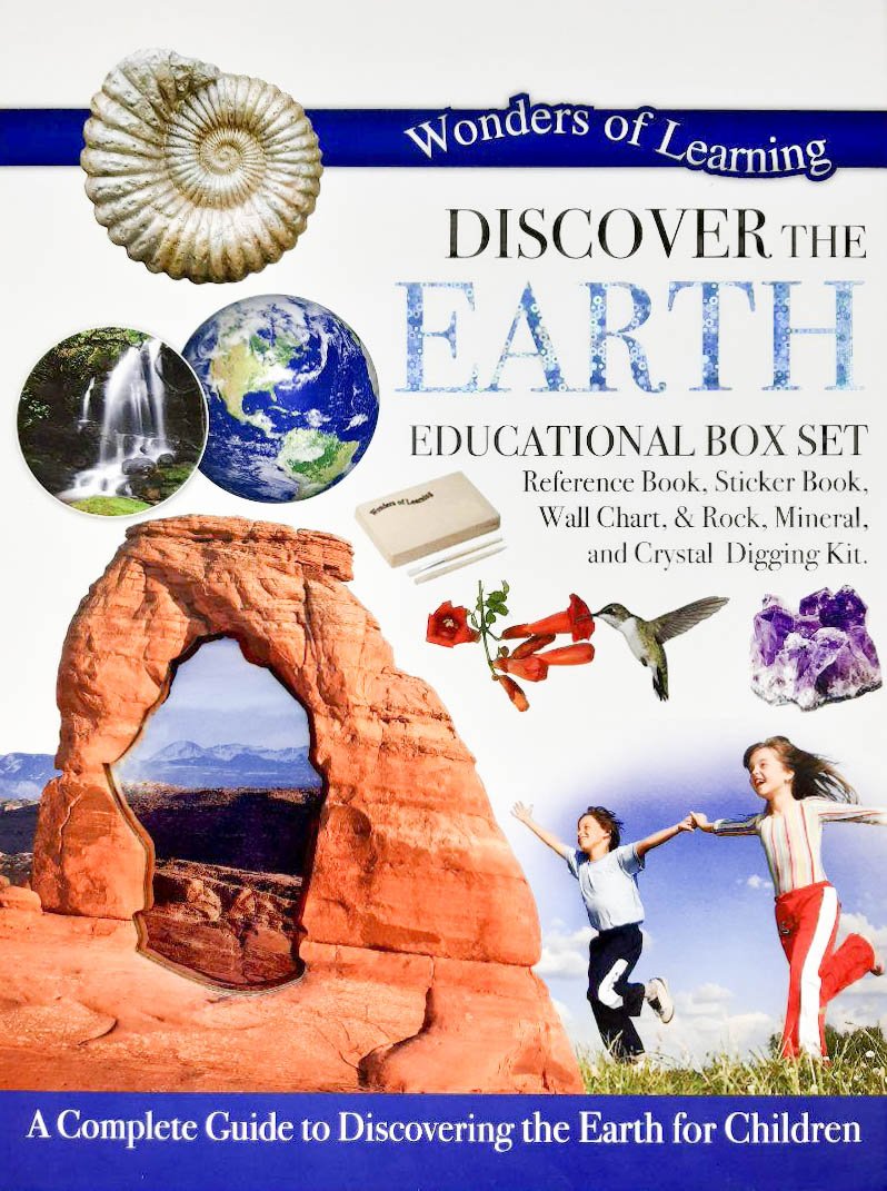 The Wonders of Learning: Discover the Earth Educational Box Set contains a reference book, a sticker book, a wall chart and a rock-, mineral- and crystal-digging kit.