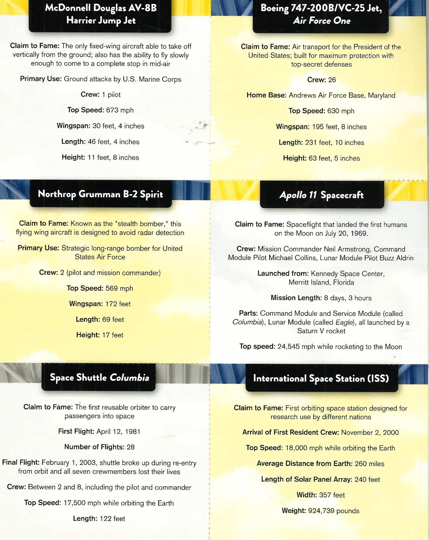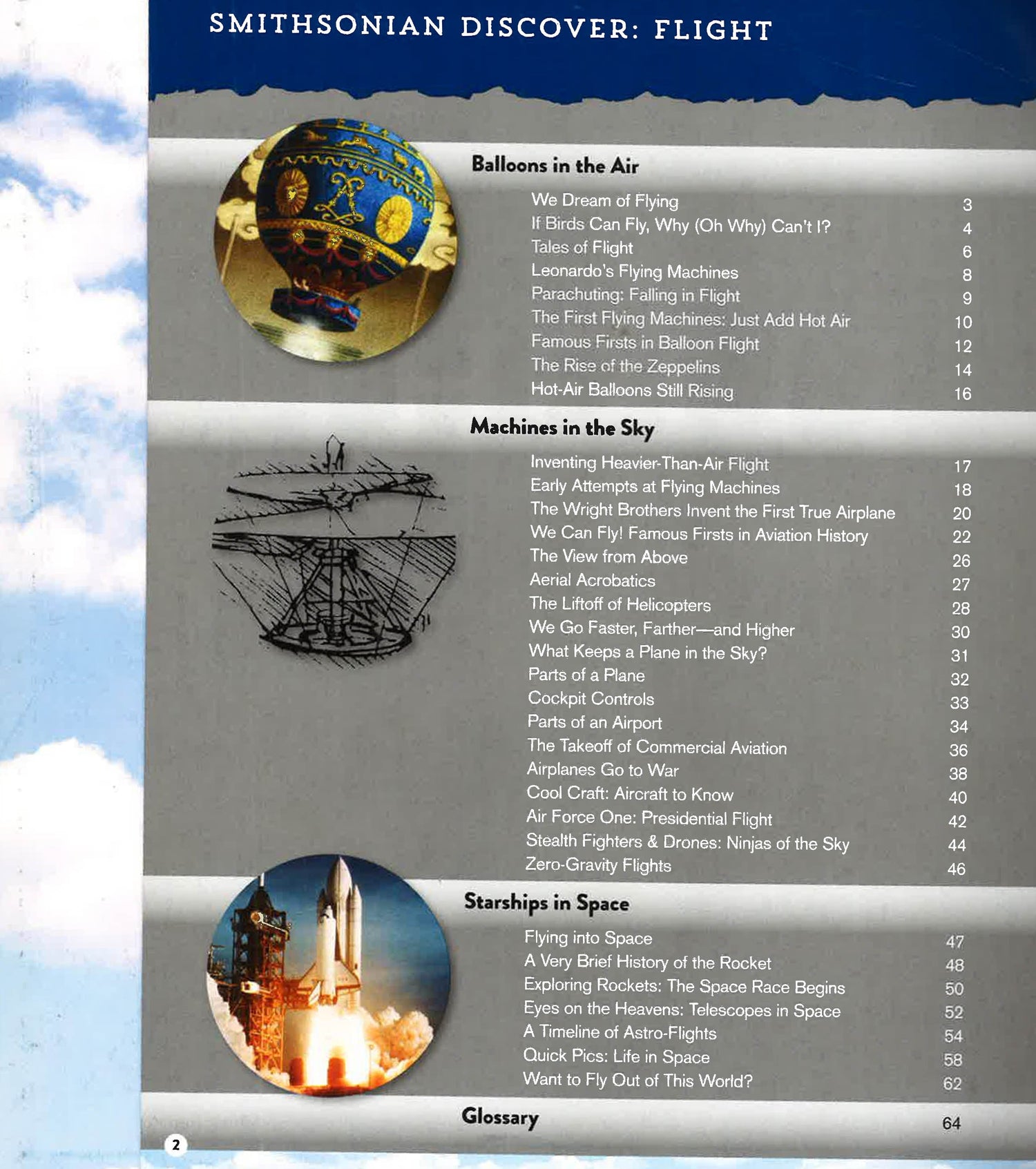 Smithsonian Discover: Flight brings the awe-inspiring experience of the Smithsonian?s National Air and Space Museum right into the pages of a book. It's a personal guide to the history and science of flight, and a collaboration with the venerable Smithsonian Institution. This authoritative guide answers all the questions that kids ask (and that parents may not be able to answer), like ?What makes a plane stay in the air?,? ?What?s a sonic boom?,? and maybe most importantly, ?How do astronauts go to the bathroom in space?? Arranged into three sections, Balloons in the Air, Machines in the Sky, and Starships in Space, Smithsonian Discover: Flight chronicles the history and evolution of flight in way meant to inspire future aviators and astronauts.This unique title also delivers hands-on activities like you would find at the Smithsonian. Bound right into the book are 12 fact cards on the coolest aircraft, a large double-sided poster, and 9 paper airplanes in three designs (a historic glider, a military jet, and a space shuttle) with easy-to-follow folding instructions. Altogether, Smithsonian Discover: Flight offers kids a chance to take off on a trip to the Smithsonian without ever leaving their seats.