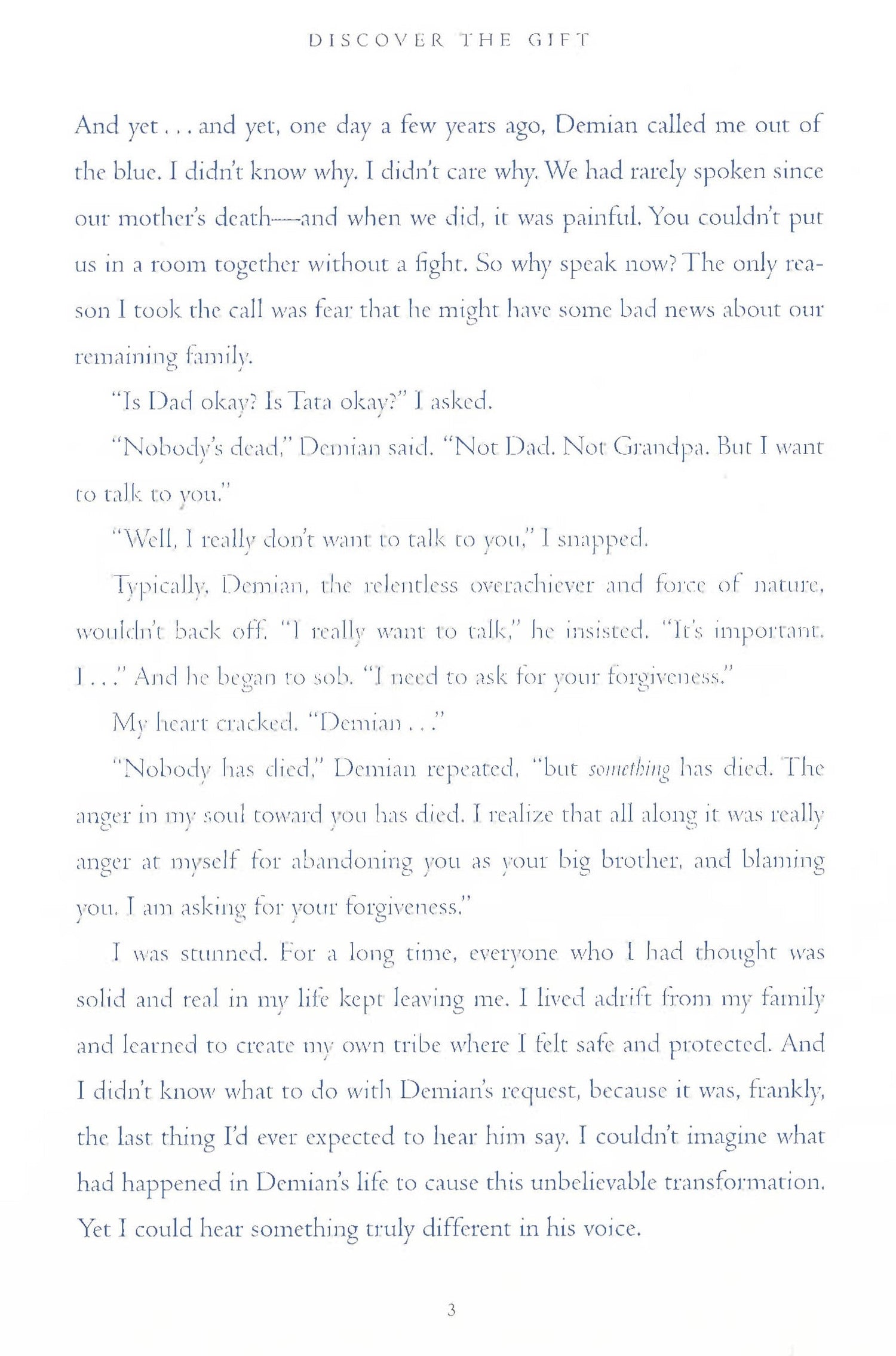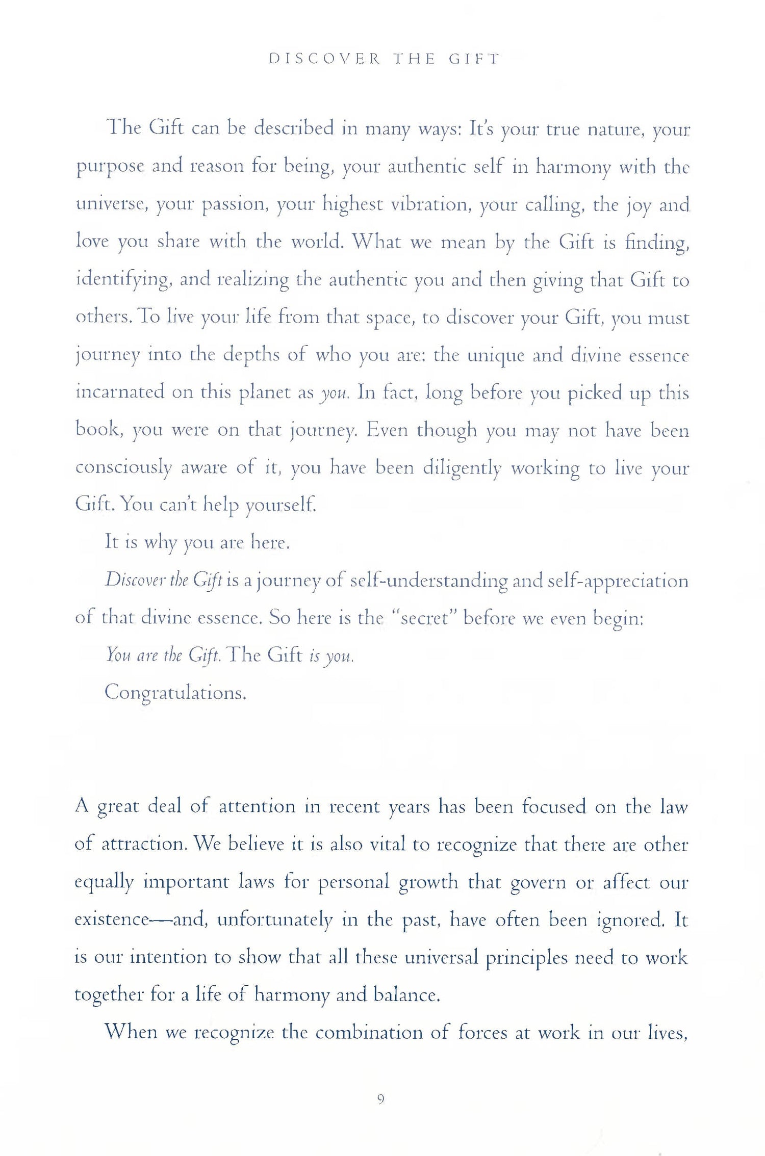 Discover the Gift is the companion book to an upcoming film of the same name which introduces the Gift, a compelling concept that contains the wisdom you need to unlock your fullest potential. The insight and the life plan that Discover the Gift presents will definitely appeal to the millions who loved The Secret. This complete programme provides people with the means to find happiness and peace by living the life they were meant to live, resulting in a variety of possible benefits, including a closer family, career fulfilment, material abundance, greater creativity and unconditional love. It is explained by well-known transformational teachers, such as His Holiness the Dalai Lama, Jack Canfield, Mark Victor Hansen and Barbara de Angelis, who lay out the steps one needs to take to uncover this life-changing source of strength and wisdom.