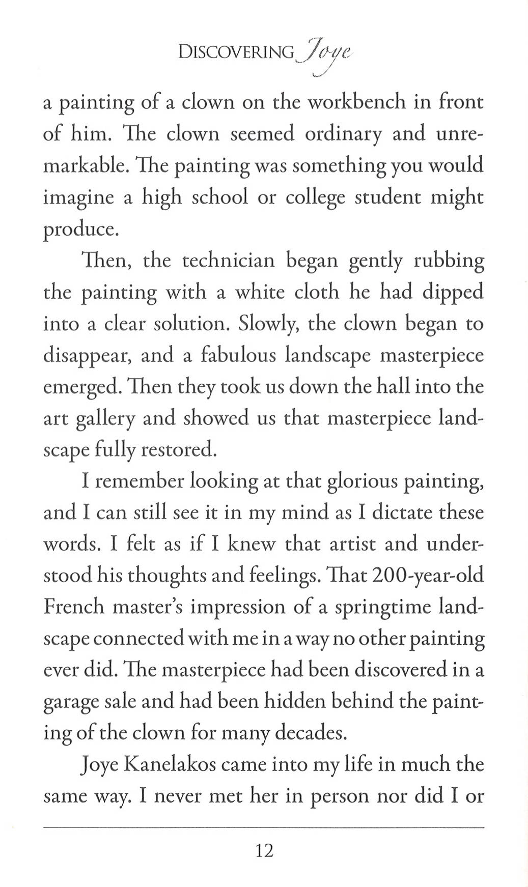 "Discovering Joye" is the amazing discovery of Joye Kanelakos's life's work in poetry. It was at her deathbed where Kanelakos told her children about a hidden box that held the secrets to her creative passion--a compilation of poems that had gone unnoticed... until now.Bestselling author, Jim Stovall takes us behind the facades that shroud our everyday lives and helps us to see the masterpieces that lie beneath the people, places and things we thought we knew.