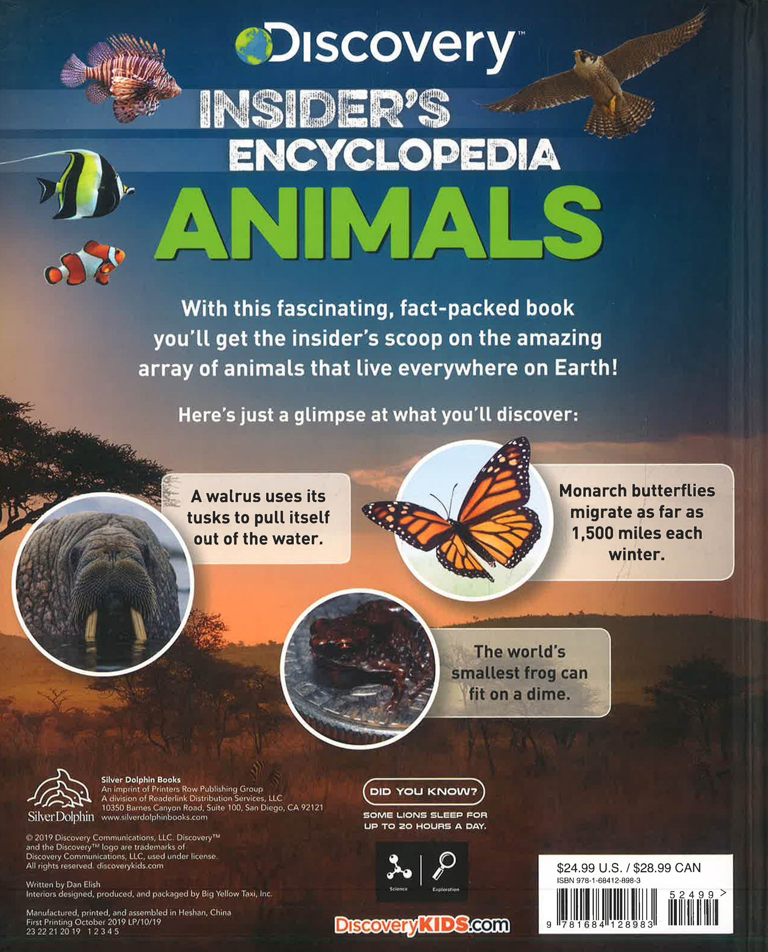 Did you know that monarch butterflies migrate as far as 1,500 miles each winter? Or that some lions sleep up to 20 hours a day? Discovery: Insider&;s Encyclopedia: Animals is packed with fun facts and fascinating photographs of animals that live on land, in the air, in the water, or at home with us. This impressive hardcover book is a great reference tool for animal projects at school, but it's also a fun read for kids to pick up anytime they are looking to know a bit more about the animals around us.