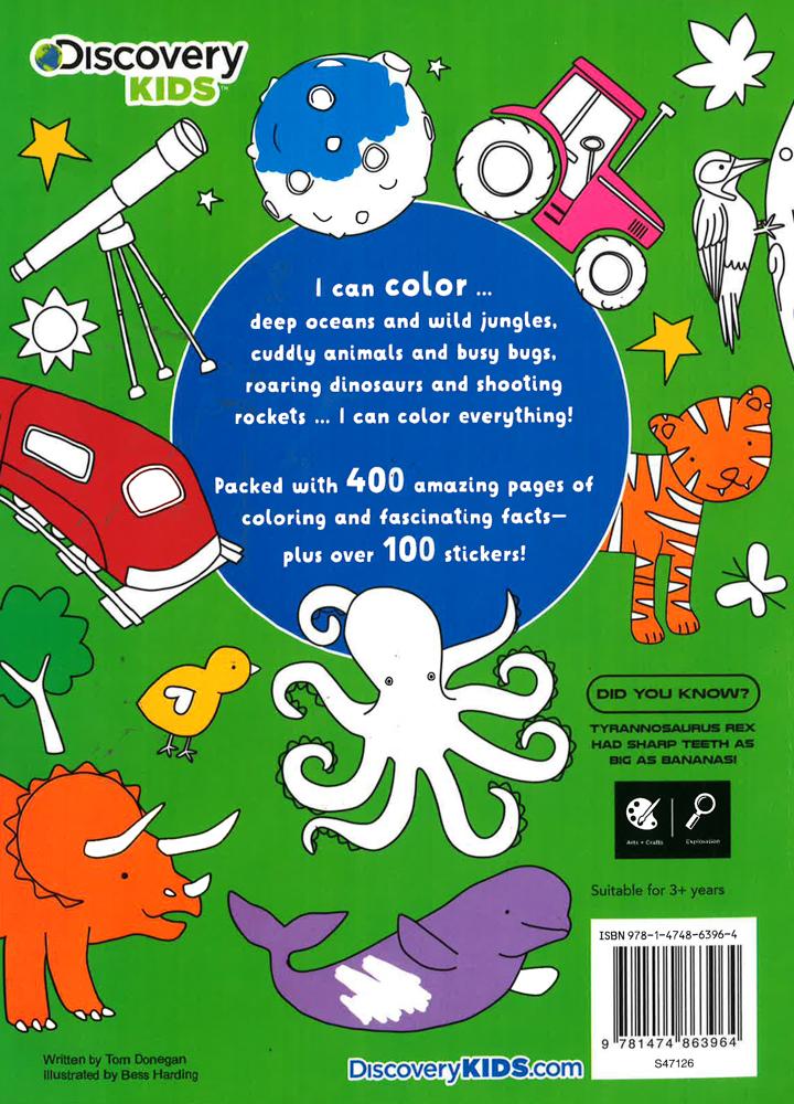 I Can Color Everything! I can color deep oceans and wild jungles, cuddly animals and busy big roaring dinosaurs and shooting rockets. I can color everything! This Discovery Kids book is packed with 400 amazing pages of coloring and fascinating facts - plus over 100 stickers!