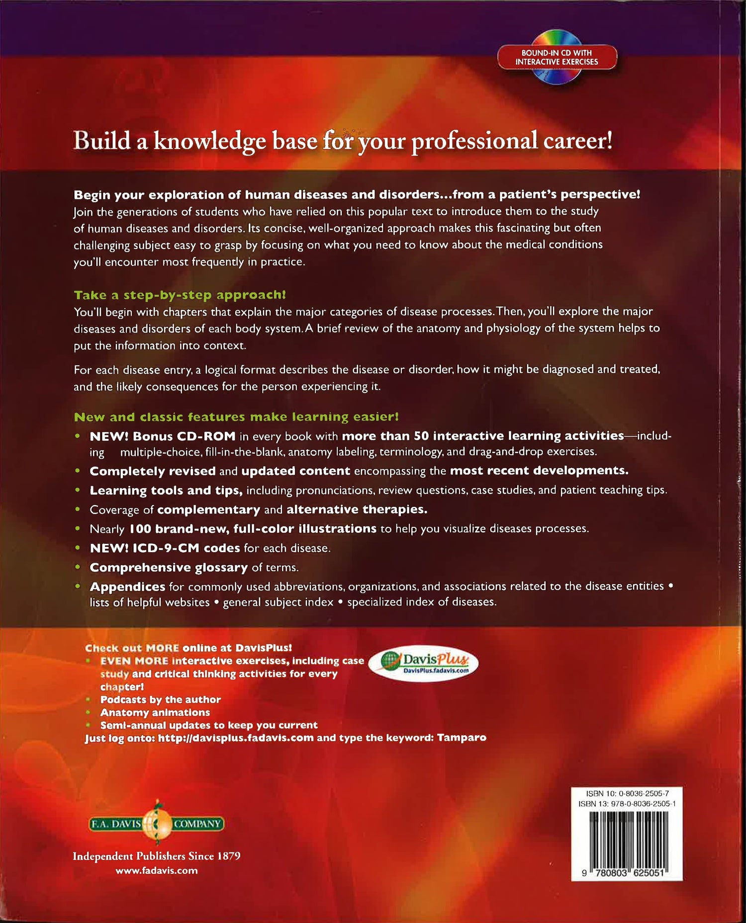 The field's classic text is noted for its accessible, clear writing style and comprehensive content. Thoroughly updated and revised to meet the needs of today's students and today's classes, you'll find just the right amount of information in an easy-to-follow format that covers more than 350 common diseases and disorders. There is a bonus CD-ROM in every book with interactive learning activities for every chapter: multiple-choice, fill-in-the-blank, picture it, and paragraph match. This title is thoroughly updated and revised to reflect the most recent developments in diagnostic techniques and treatment. There are structure and function summaries in each body system chapter.