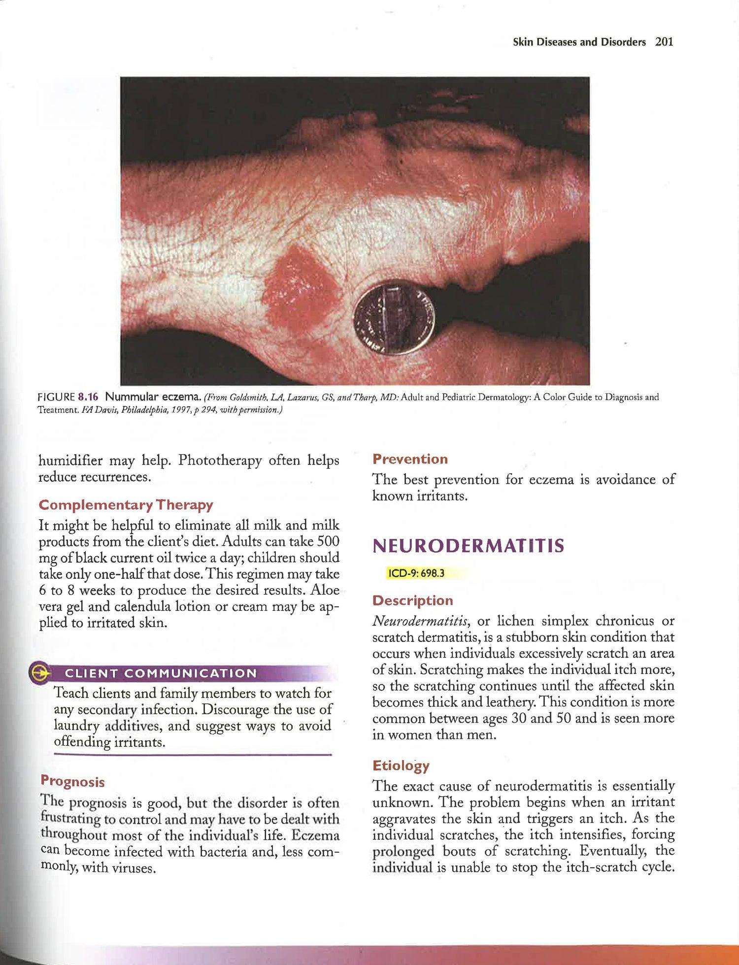 This title provides consistently organized coverage of the most common diseases and disorders that includes: Description; Pertinent ICD-9-CM codes; Signs and Symptoms; Etiology; Diagnosis; Treatment; Complementary Therapy; Client Communications; Prognosis; Prevention; Case studies, followed by questions, with examples of patients who might be encountered in professional practice; and, Teaching tips that feature a patient's perspective and offer guidance on how to provide the education or information needed for a particular disease or disorder.