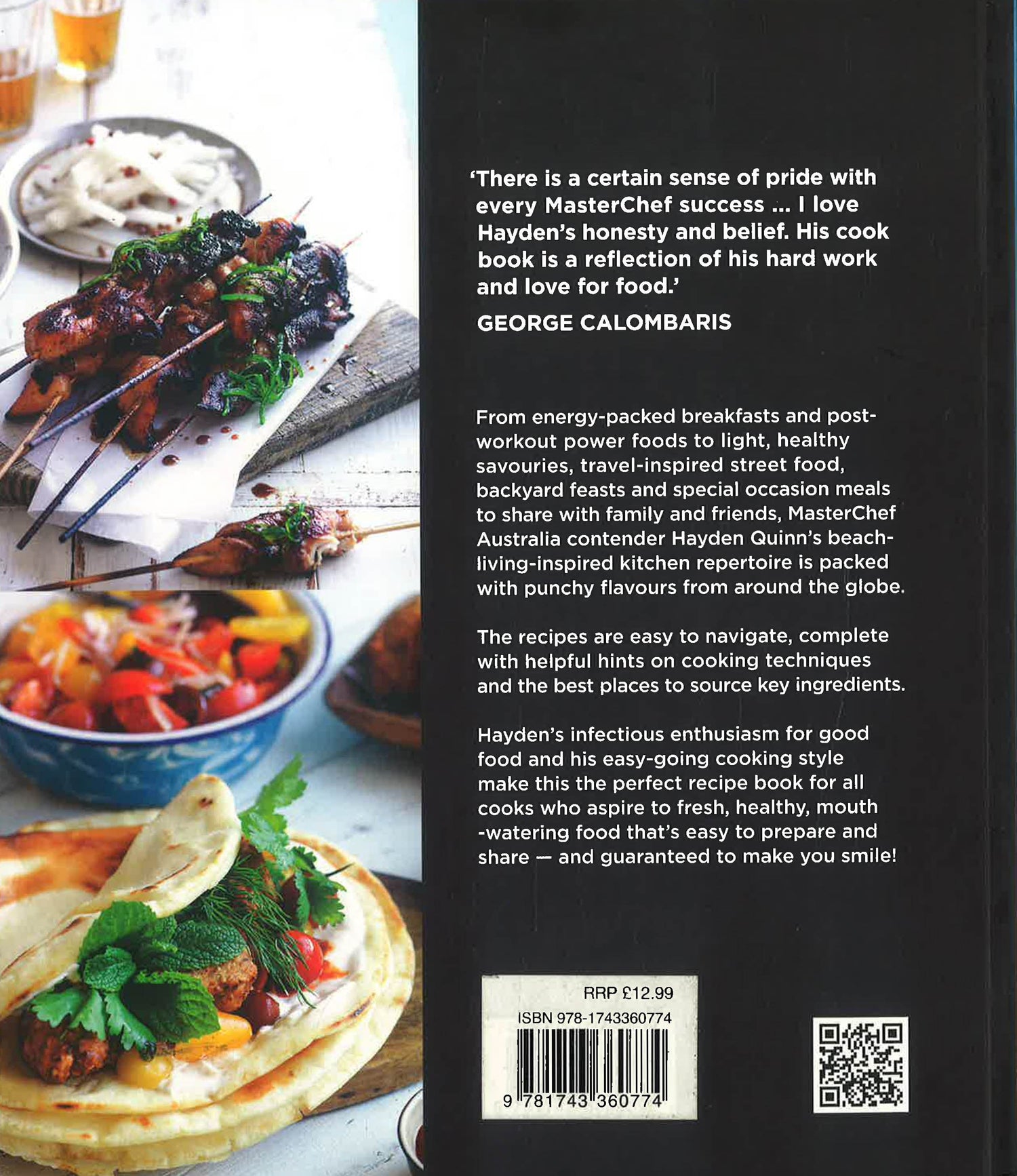 MasterChef Australia contender Hayden Quinn's beach-living-inspired kitchen repertoire is packed with punchy flavours from around the globe. Think energy-packed breakfasts and post-surfing power foods, travel-inspired street food, backyard feasts and special occasion meals to share with family and friends. His recipes are easy to navigate, complete with helpful hints on cooking techniques and the best places to source key ingredients. Hayden's enthusiasm for good food and his easy-going cooking style make this the perfect recipe book for cooks who aspire to fresh, healthy, mouth -watering food that's easy to prepare and share - and guaranteed to make you smile!