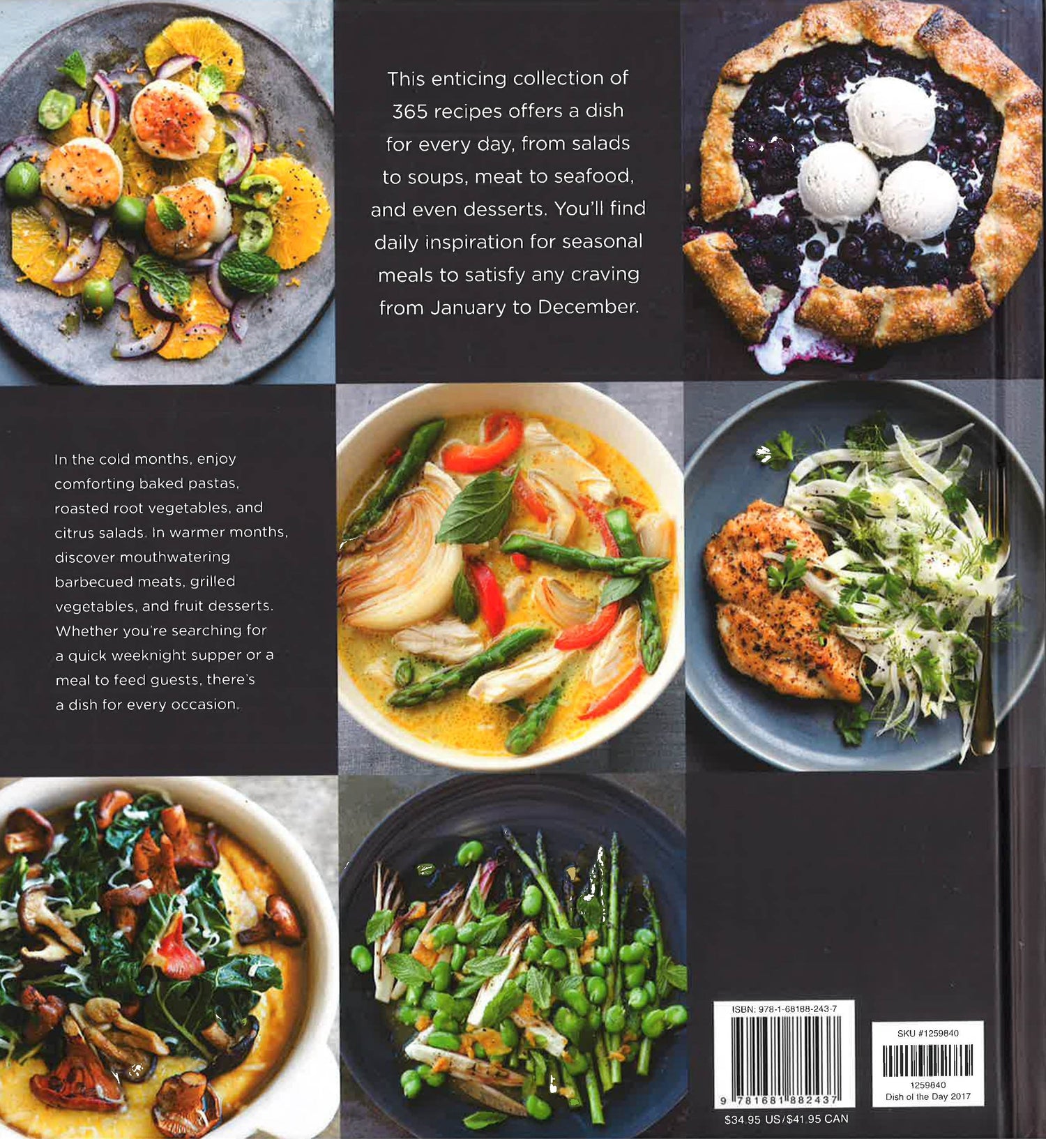 From the best-selling Williams Sonoma Of The Day series, comes a compilation of 365 favorite recipes, ranging from soups, salads, desserts, and one pot, vegetable, and healthy dishes. Find inspiration for cooking any day of the year in this indispensable collection. This colorful, calendar-style cookbook offers ideas to match any season, occasion, or mood. Organized by date, this book can be used as a guide to eating seasonally throughout the year. Stunning photographs and a colorful graphic design add visual appeal to the enticing cookbook.