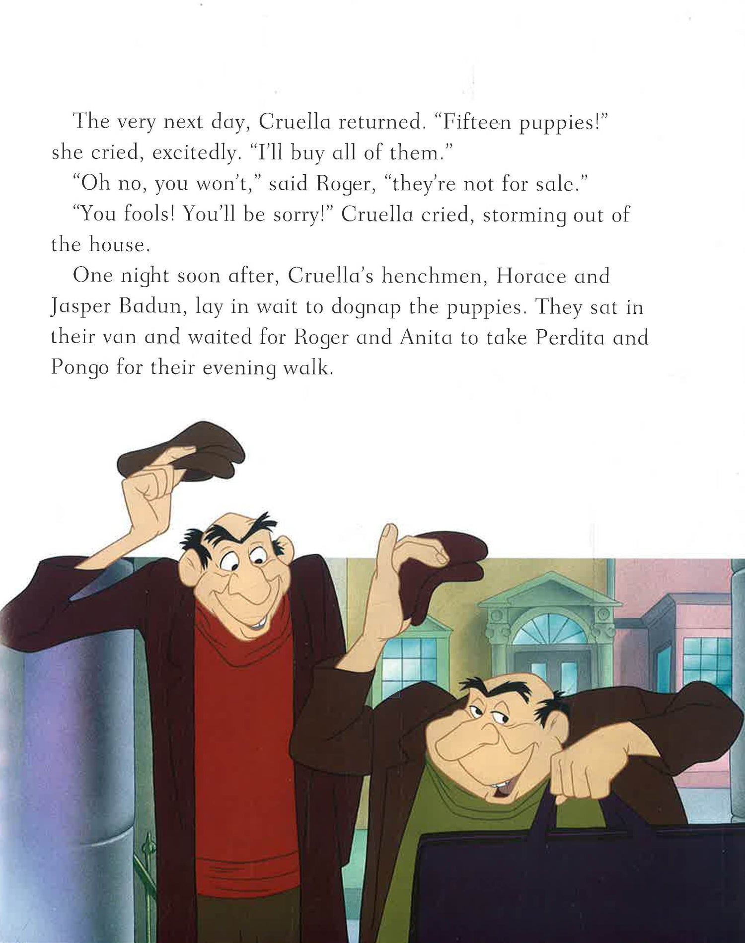 Pongo and Perdita are very proud parents to fifteen puppies. However, when Cruella De Vil steals the puppies to make them into a fur coat, they must leap into action! Will Pongo and Perdita find their kidnapped puppies before its too late? Enjoy a classic Disney experience with this magical storybook.